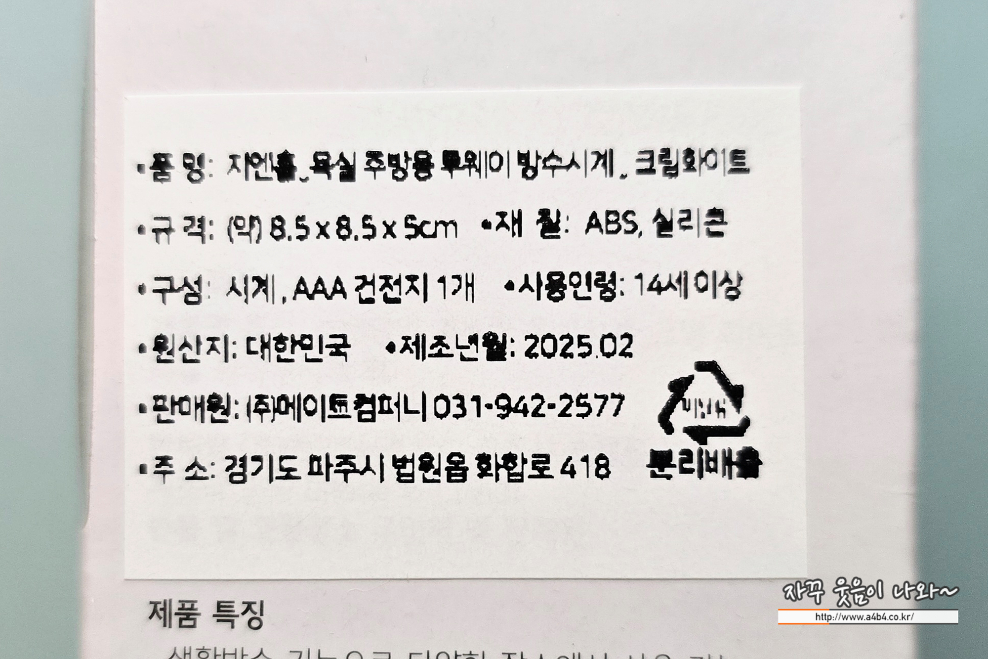참고로 같이 구입한 가온 흡착 무소음 방수 욕실 시계와 비교해 보세요.