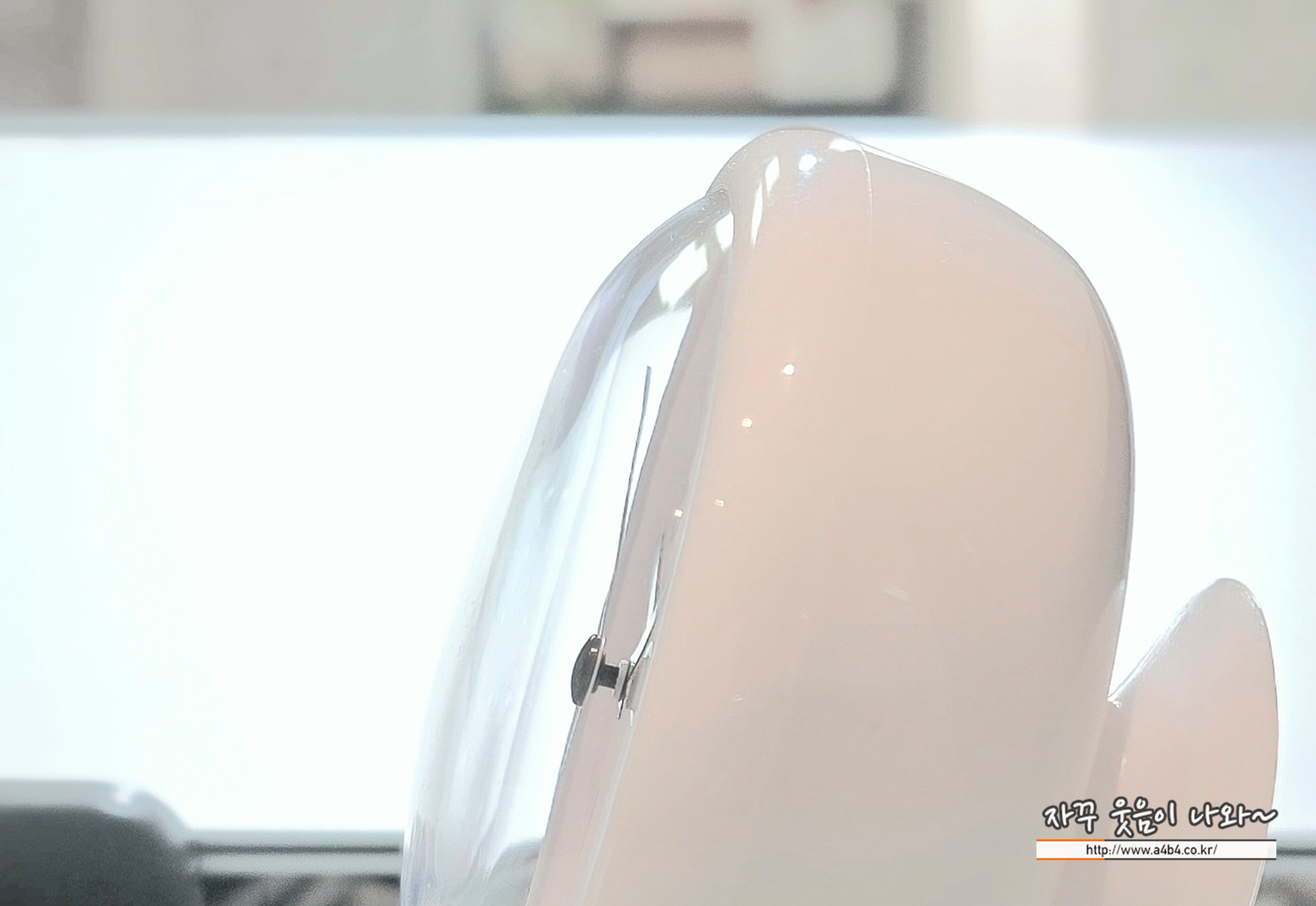 지엔홈 욕실 방수시계 옆에서 본 모습 약간 볼록이 모양을 보여주는데 재질은 유리가 아닌 고강도 투평 플라스틱이다. 전혀 불편은 없는...