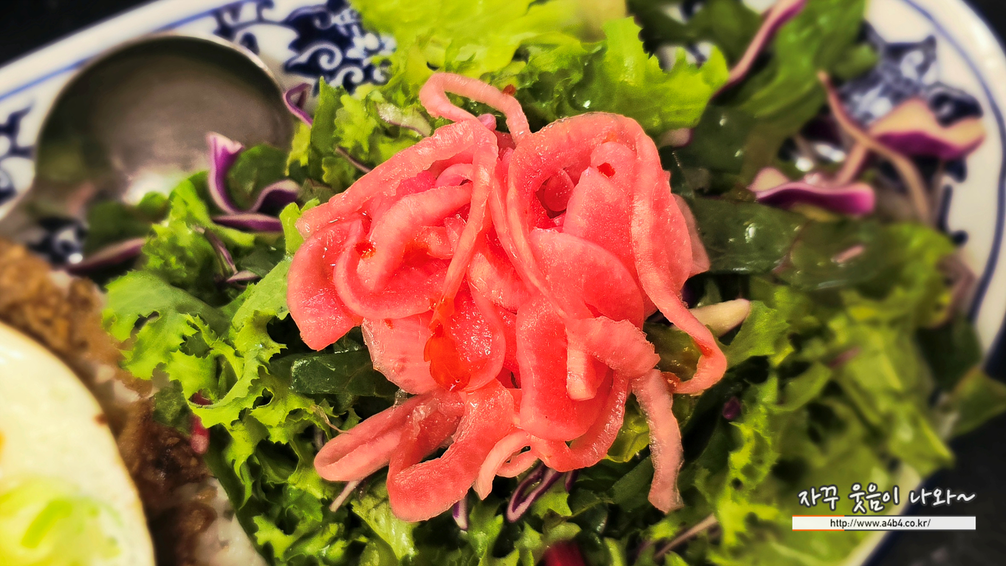 먼저 땀땀 숯불구이 돼지고기 덮밥은 모양이 너무 이쁘게 나오고요. 우선 야채가 푸짐하게 나와 좋네요. 먼저 야채먼저 먹고...