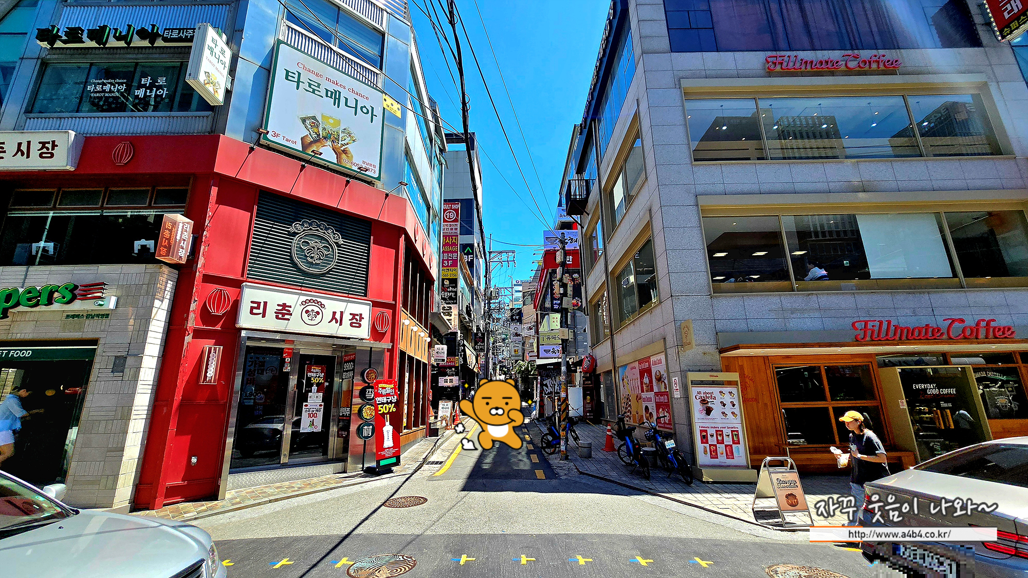 여기에서 필메이트 커피와 리춘시상 사이 골목으로 들어오셔서... (라이언이 있는)