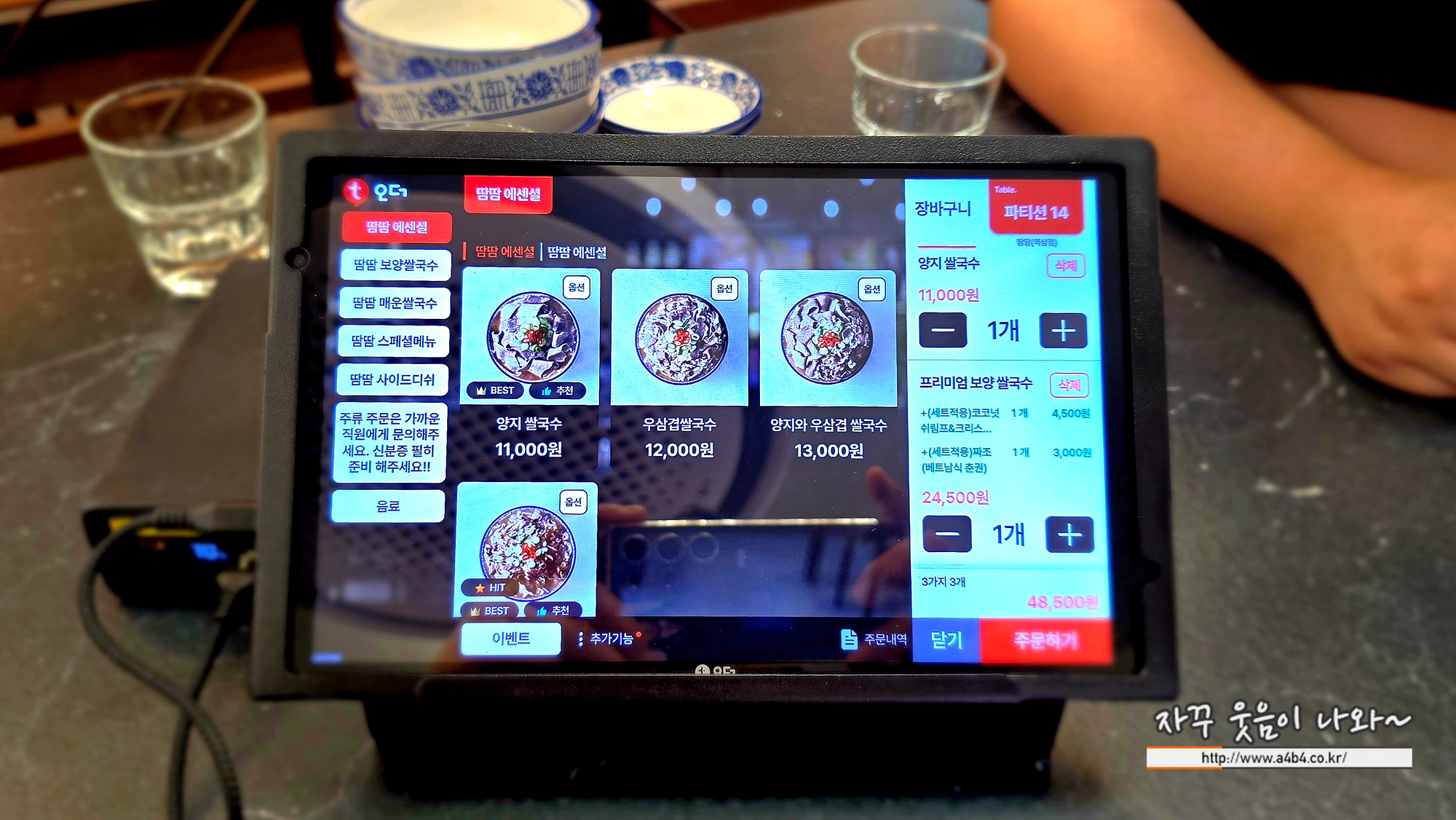 땀땀 메뉴와 선택 주문은 키오스크로, 결제는 나가시면서 카운터에서 하시면 됩니다.