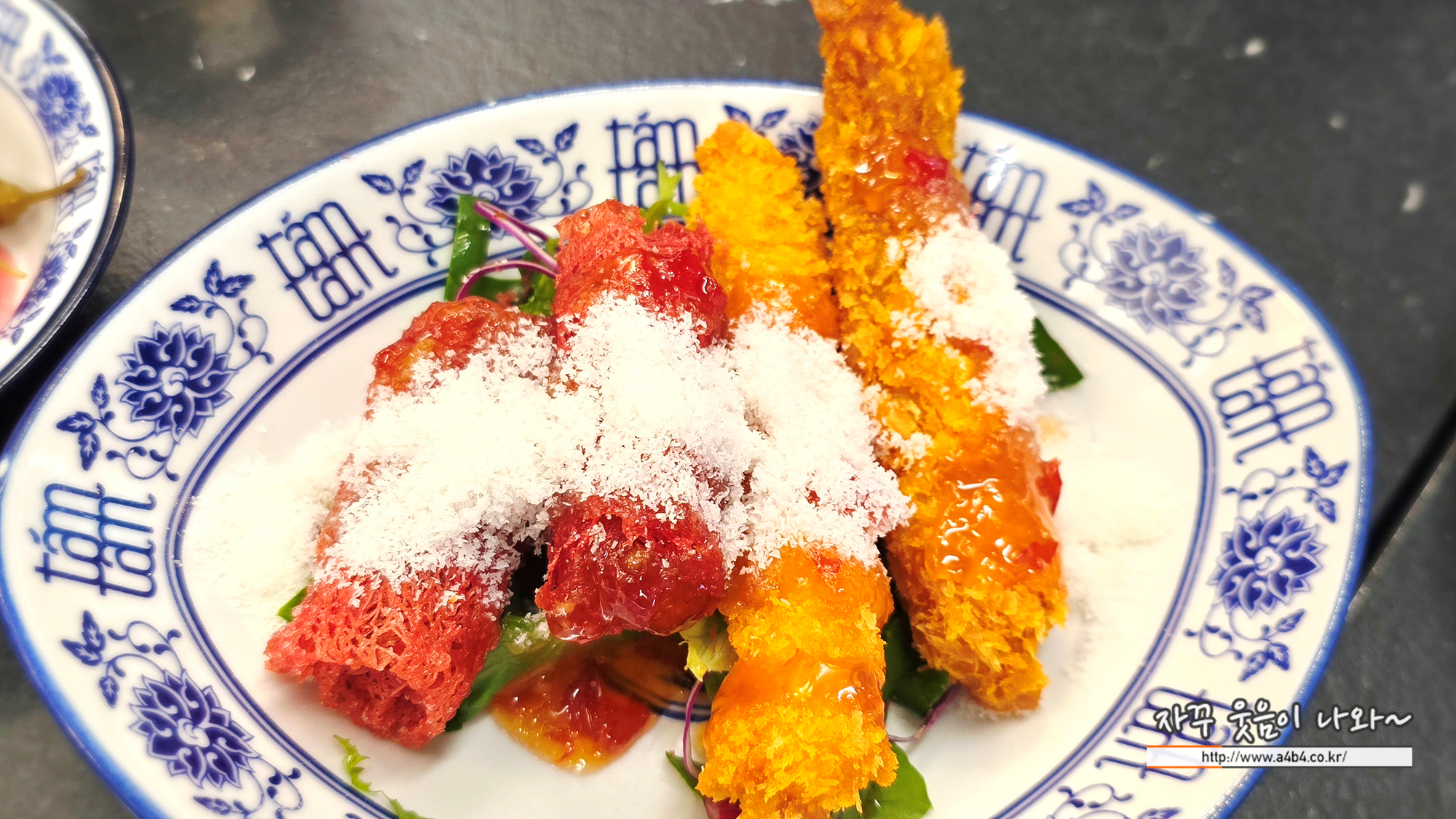 베트남 새우료이 입니다. 통새우 튀김과 다진새우 튀김료리 생각하시면 되는데요. 튀김 위에 코코넛 가루가 올라가서 너무나 달달 하더라는...