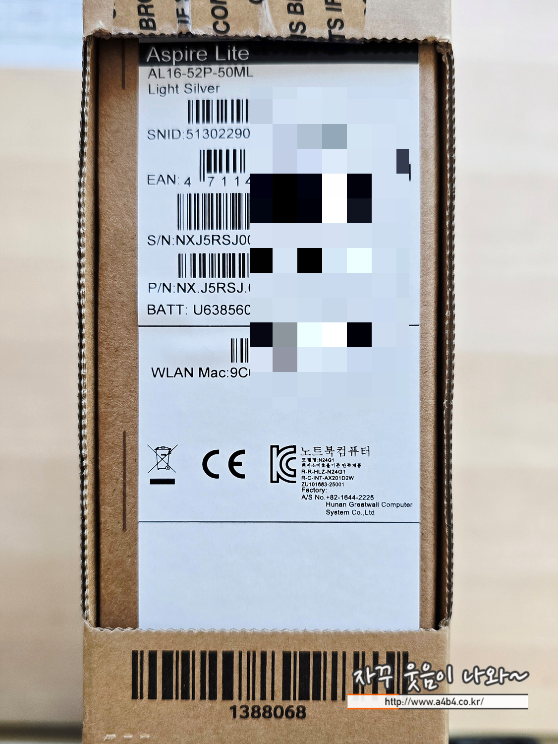 AL16-52P-50ML 구성품은 노트북 본체와 아답터, 그리고 보증서와 의미 없는 제품설명서 들어 있습니다.
