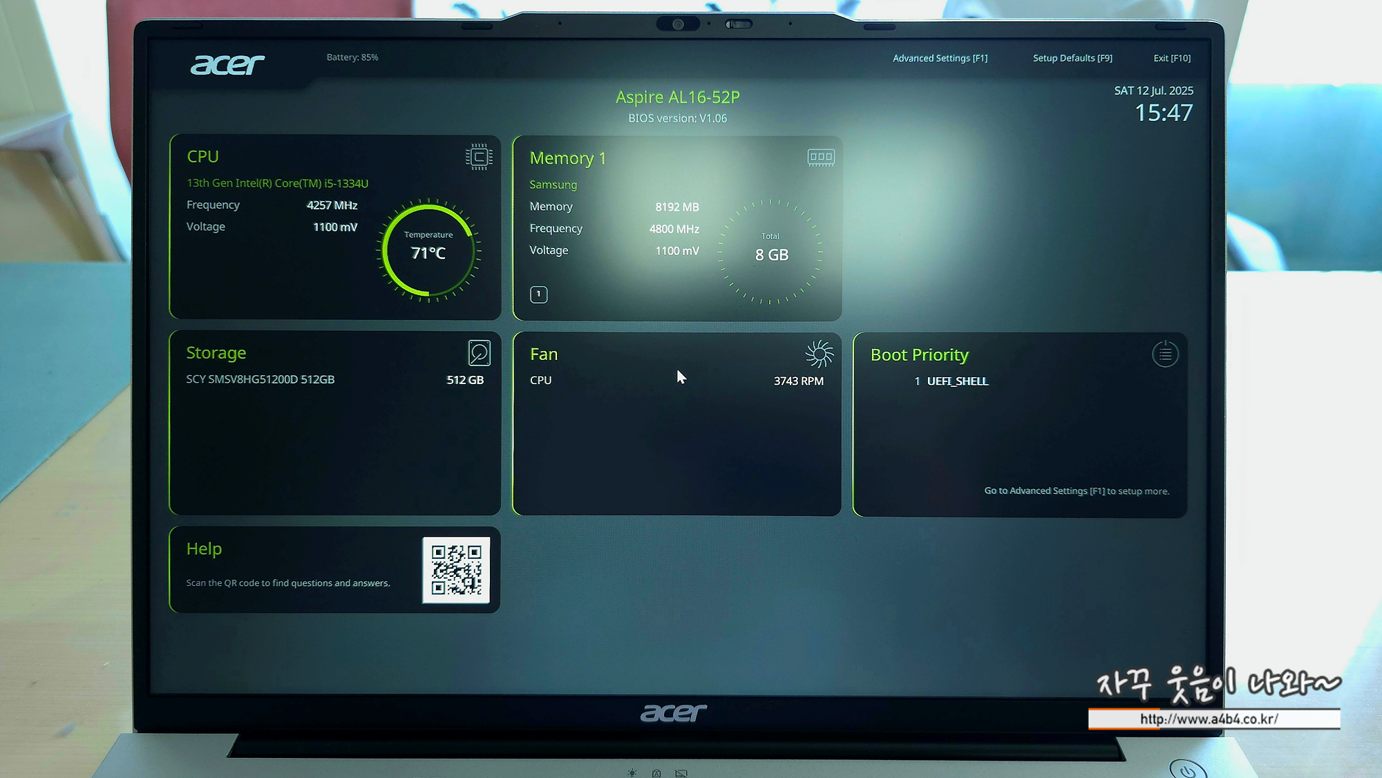 에이서 2025 아스파이어 16 코어i5 인텔 13세대 제품은 깡통 노트북임. 윈도우11 부팅 메모리 만들고 BIOS 들어가서 세팅하고 처리할 수 있는 기본 상식은 있는 분들이 구입하셔야