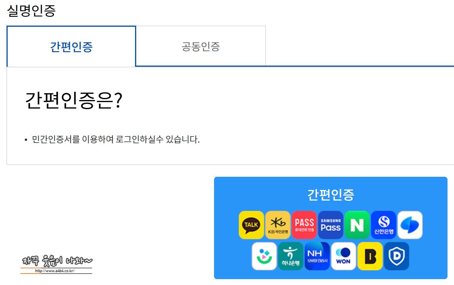 01. 실명인증 : 간편인증 또는 공동인증