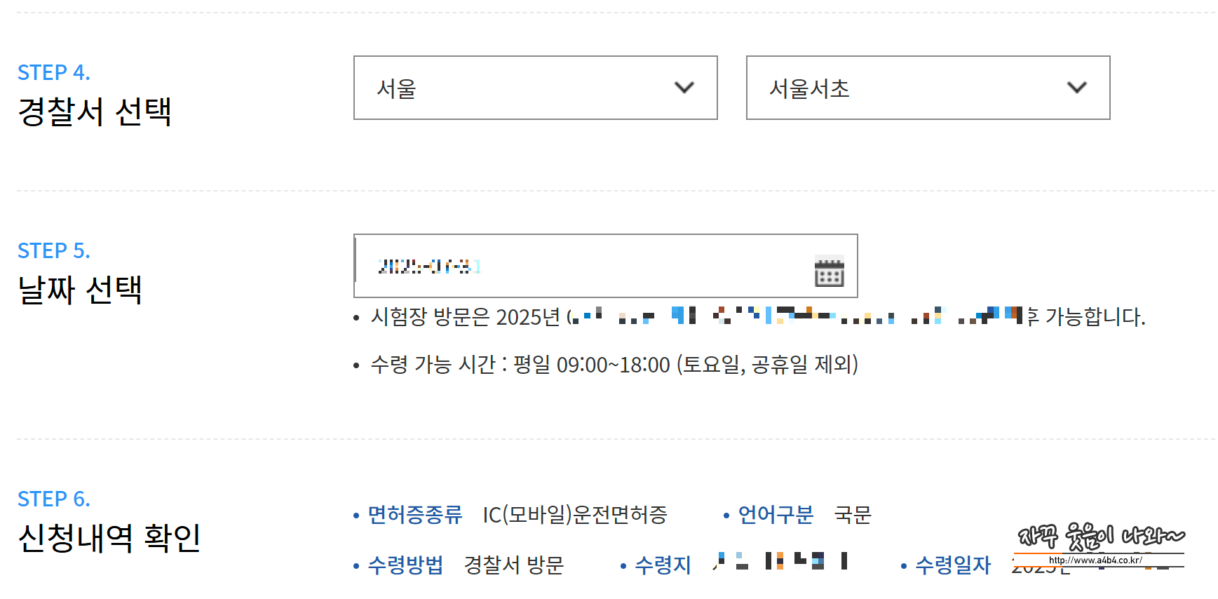 05. 운전면허증 수령지와 수령날짜 선택