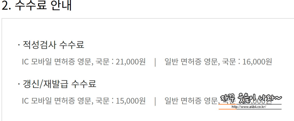분실 운전면허증 재발급 수수료는 아래와 같습니다.