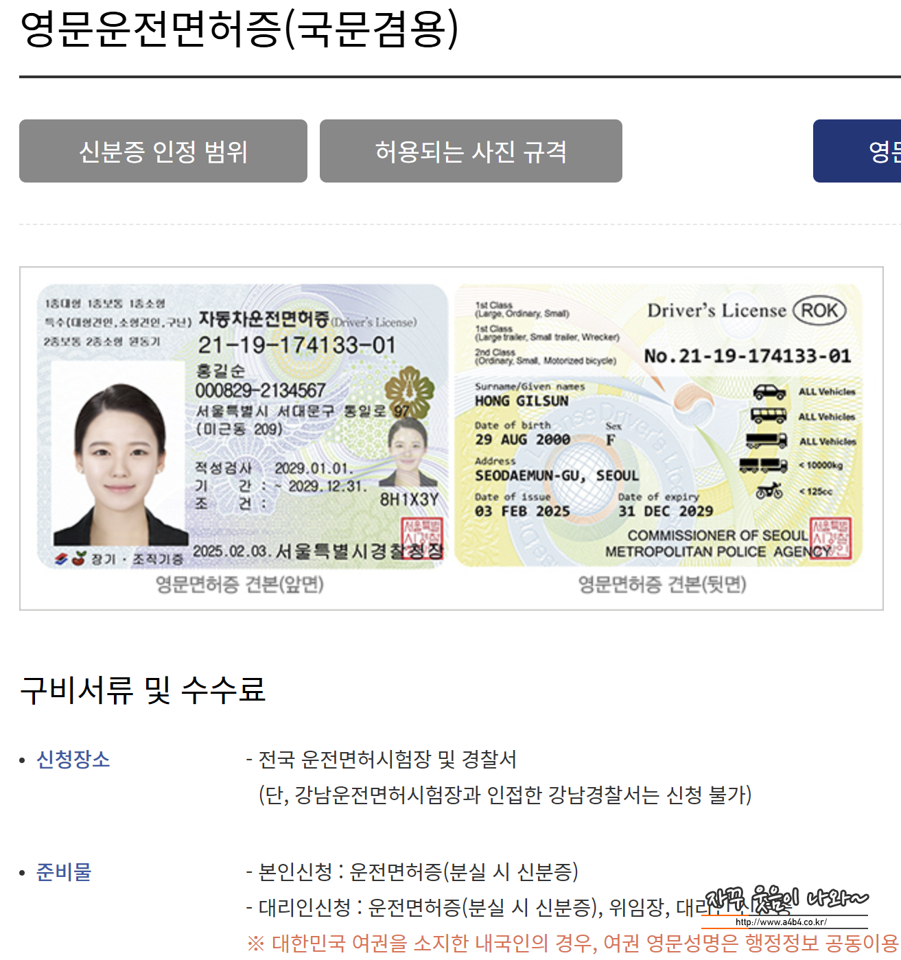 3. 여권이 유효하면 영문운전면허증 발급 가능 (추가비용 없음)