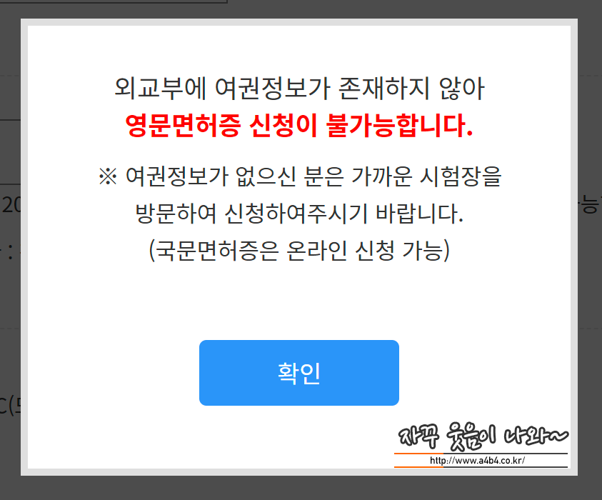저는 여권이 만료되었는데, 역시나 영문운전면허증 발급이 불가하네요.