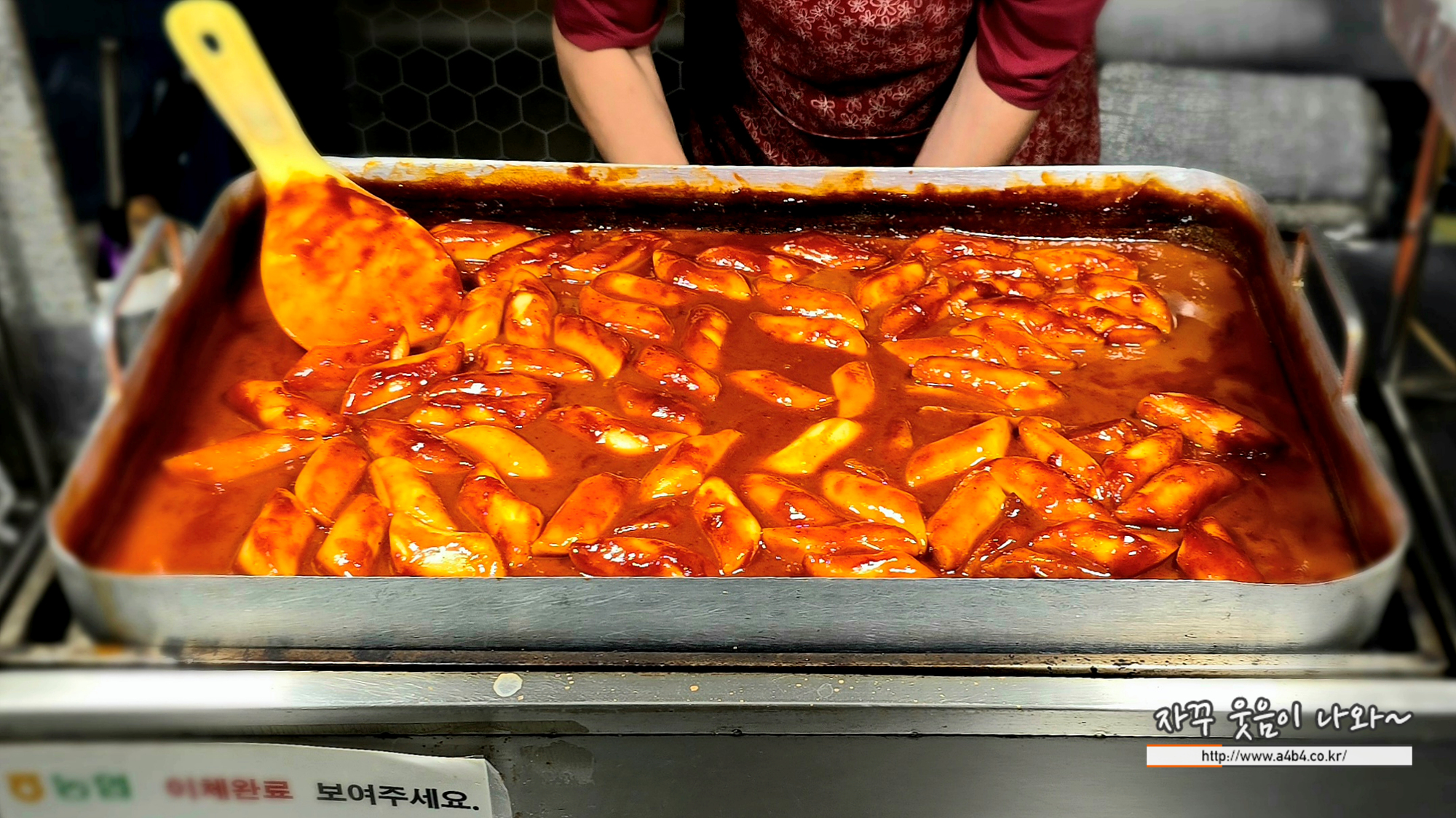 아래 사진속 떡볶이가 손 하나도 안댄 사진입니다. 떡볶이 8조각 나오네요. 어묵 반 개 정도와 이 떢볶이 하나에 4~500원 정도 됩니다.