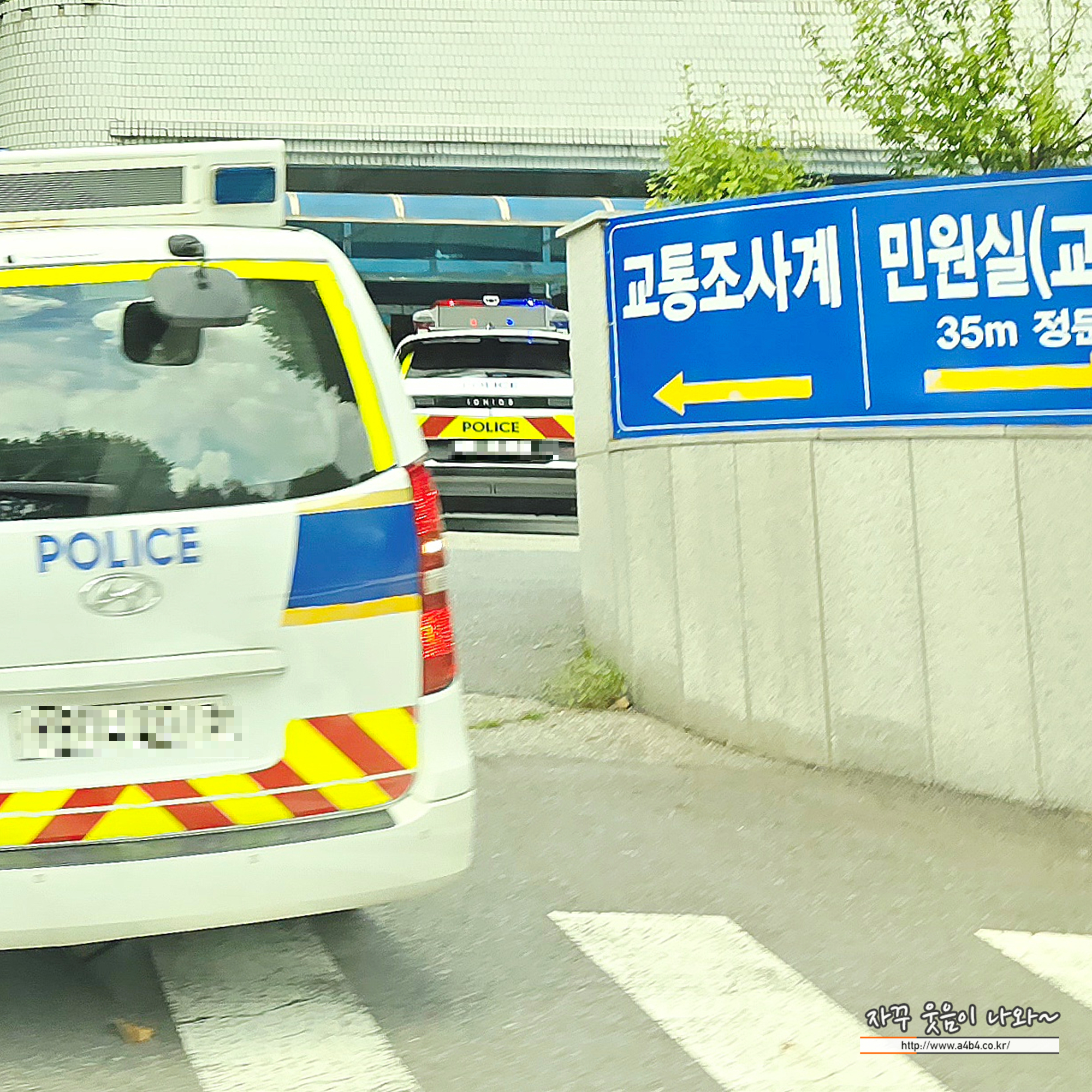 이곳에서 유턴하시면 사진과 같이 교통조사계 건물로 들어가게 됩니다. 민원실은 저 위에 위치한...