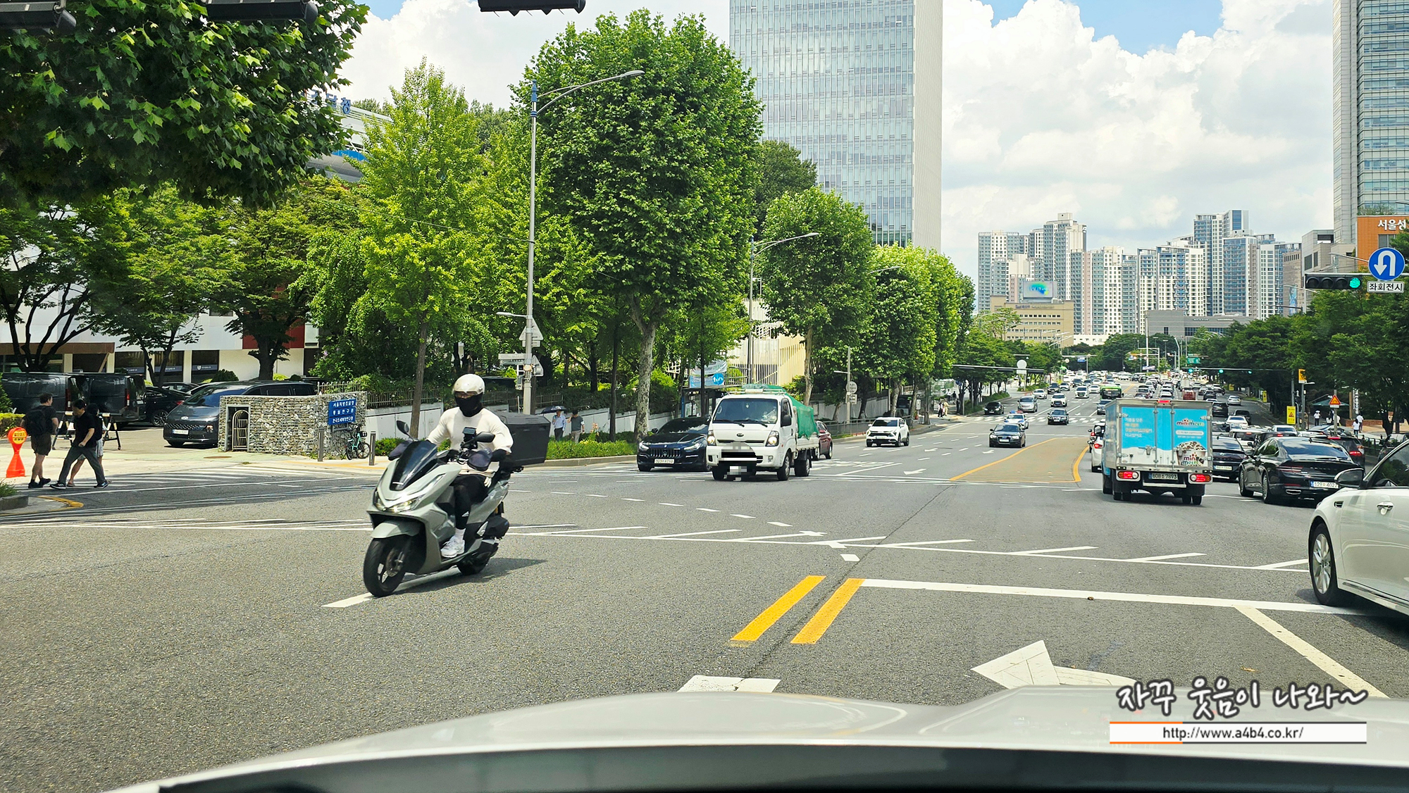 예술의 전당 방면에서 반포대로 가는 방향입니다. 사랑의교외 넘어 작게 보이는 건물이 서초경찰서...