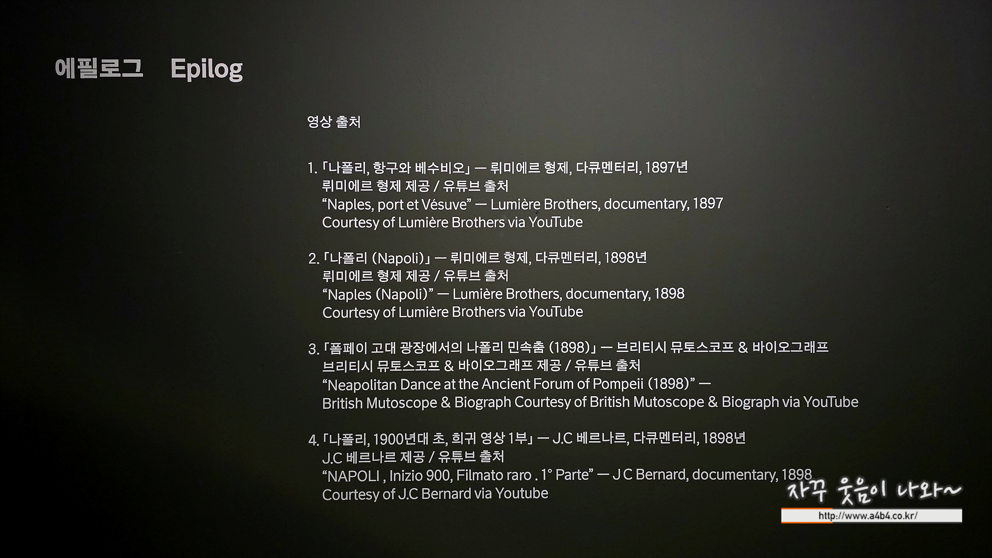마지막 공간은 영상과 사진으로 구성된 에필로그 공간으로 꾸며 있는데요.