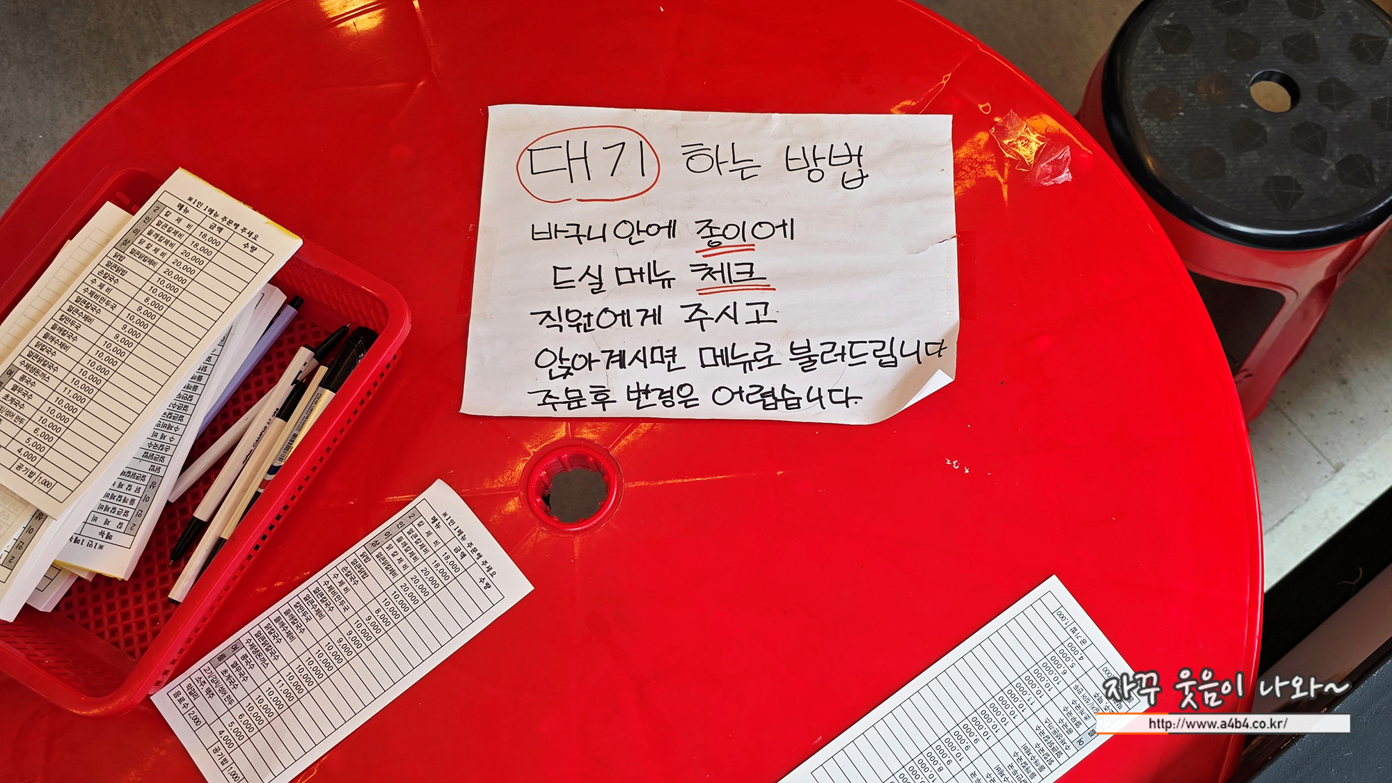 이곳 방이동 맛집 '방이 최고집 손칼국수' 는 주말의 경우 항상 빈자리가 없는데요. 아래와 같이 웨이팅이 있으면 먼저 주문표에 체크하고 대기하시면 됩니다.