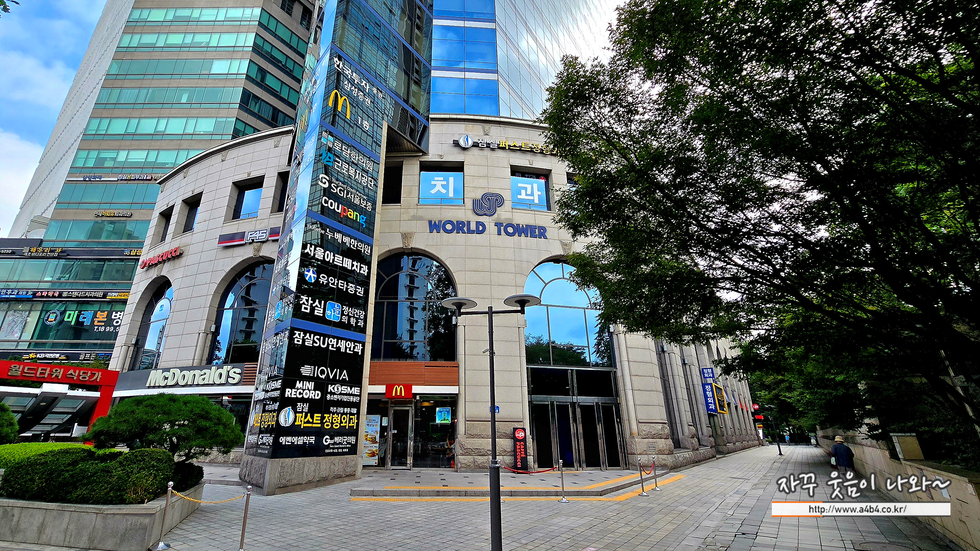 잠실 월드타워상가는 2호선 잠실역 7번출구 방향에 있습니다. 잠실롯데캐슬플라자와 쿠팡본사로 알려진 타워730빌딩 사이에 위치해 있습니다. 1층에는 항상 자리가 만석인 맥도날드 잠실역점이 위치해 있습니다.