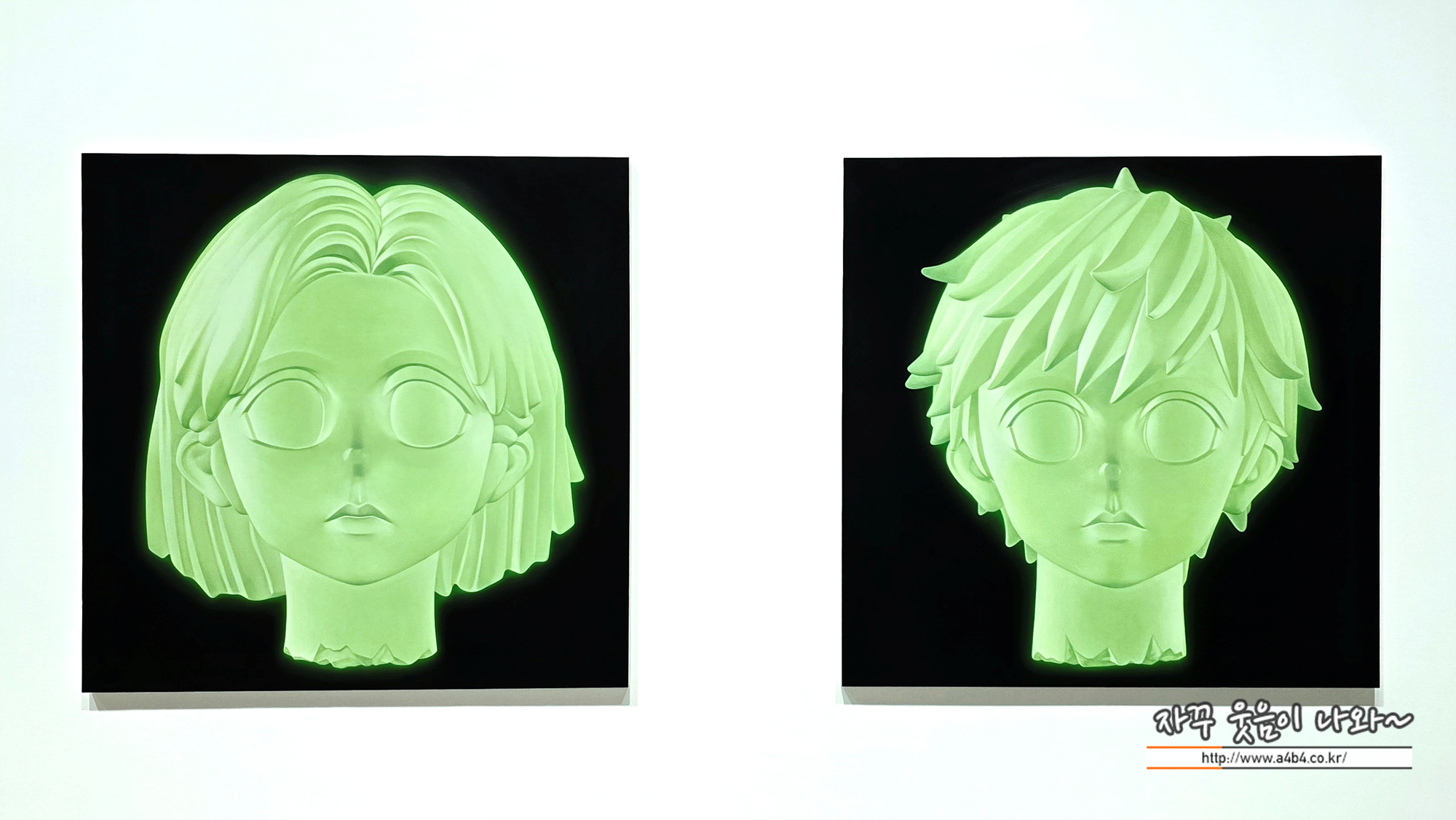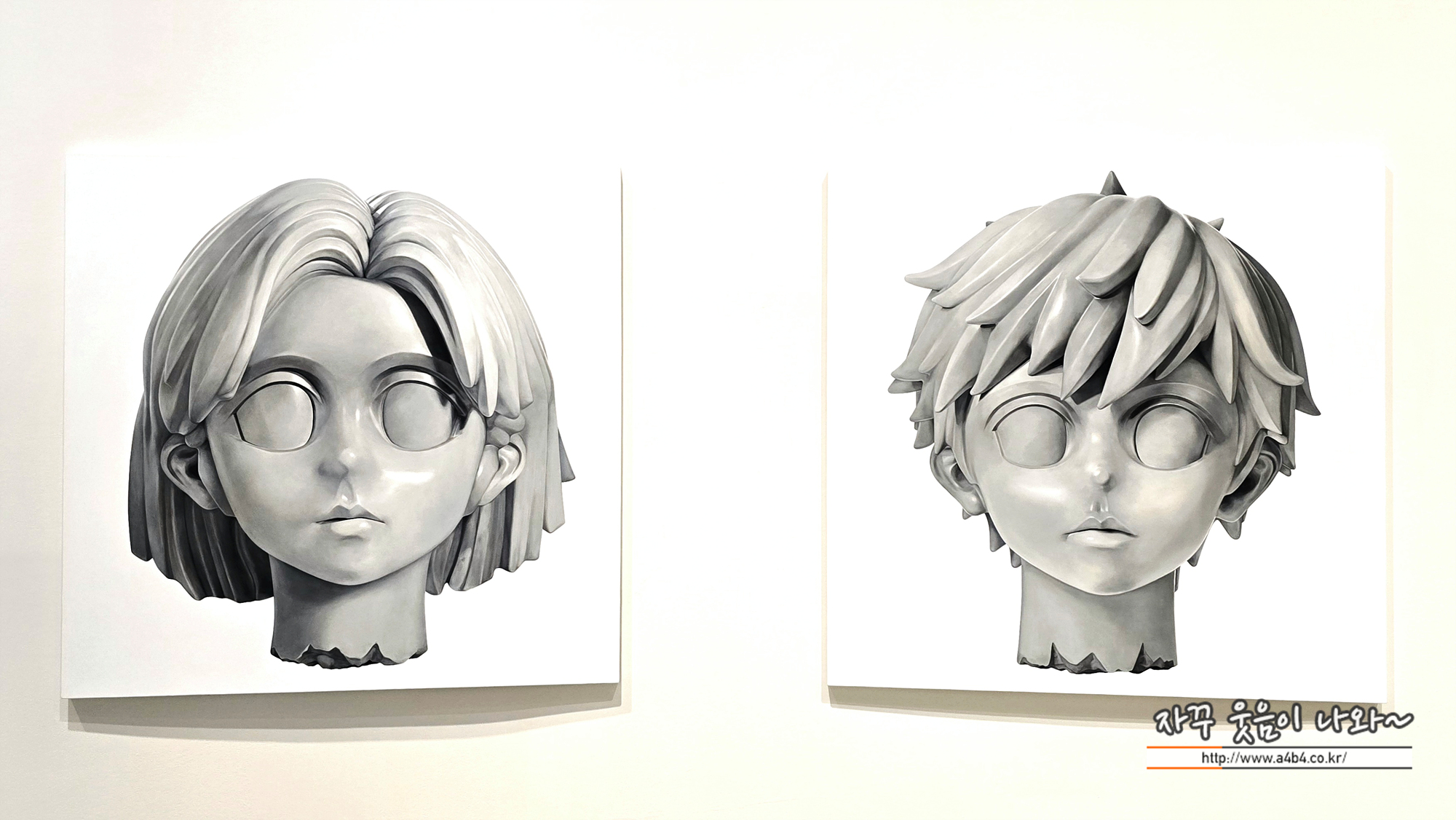 작가의 대표적인 남여 두 아이콘 한 방향은 점점 진해지고, 다른 한 방향은 희미해진다.