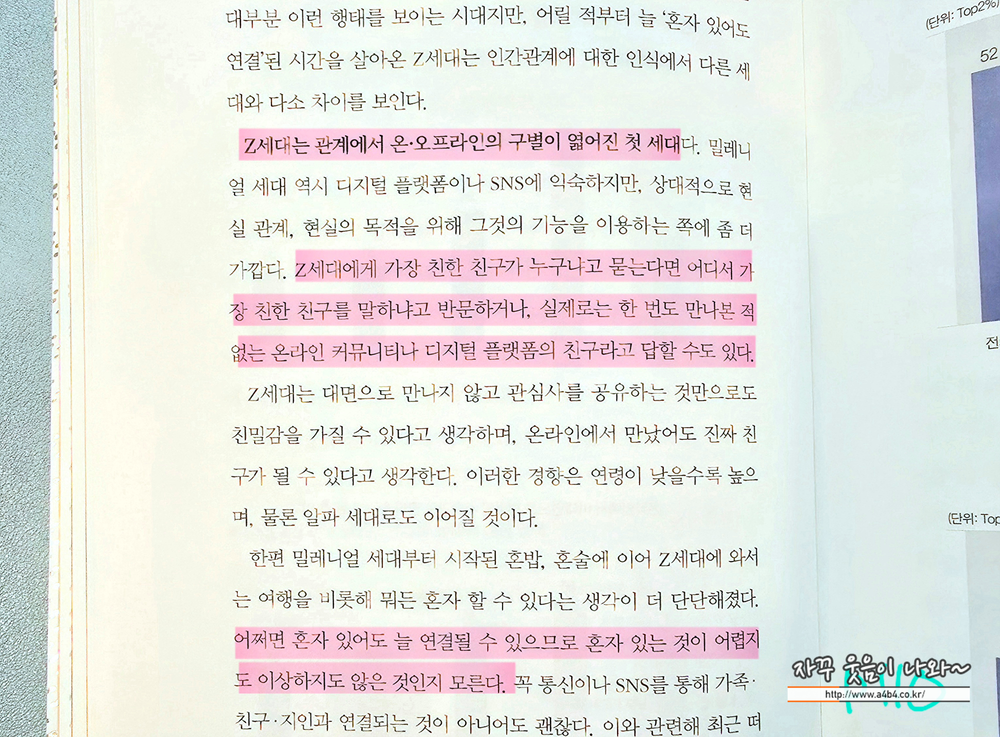 책 시작이 알파세대가 아닌 Z세대로 시작한다. 아직 알파세대에 대한 연구가 아쉬운데 현재는 중딩 모두가 알파가 된 상황에서 내용 보강이 필요해 보인다.