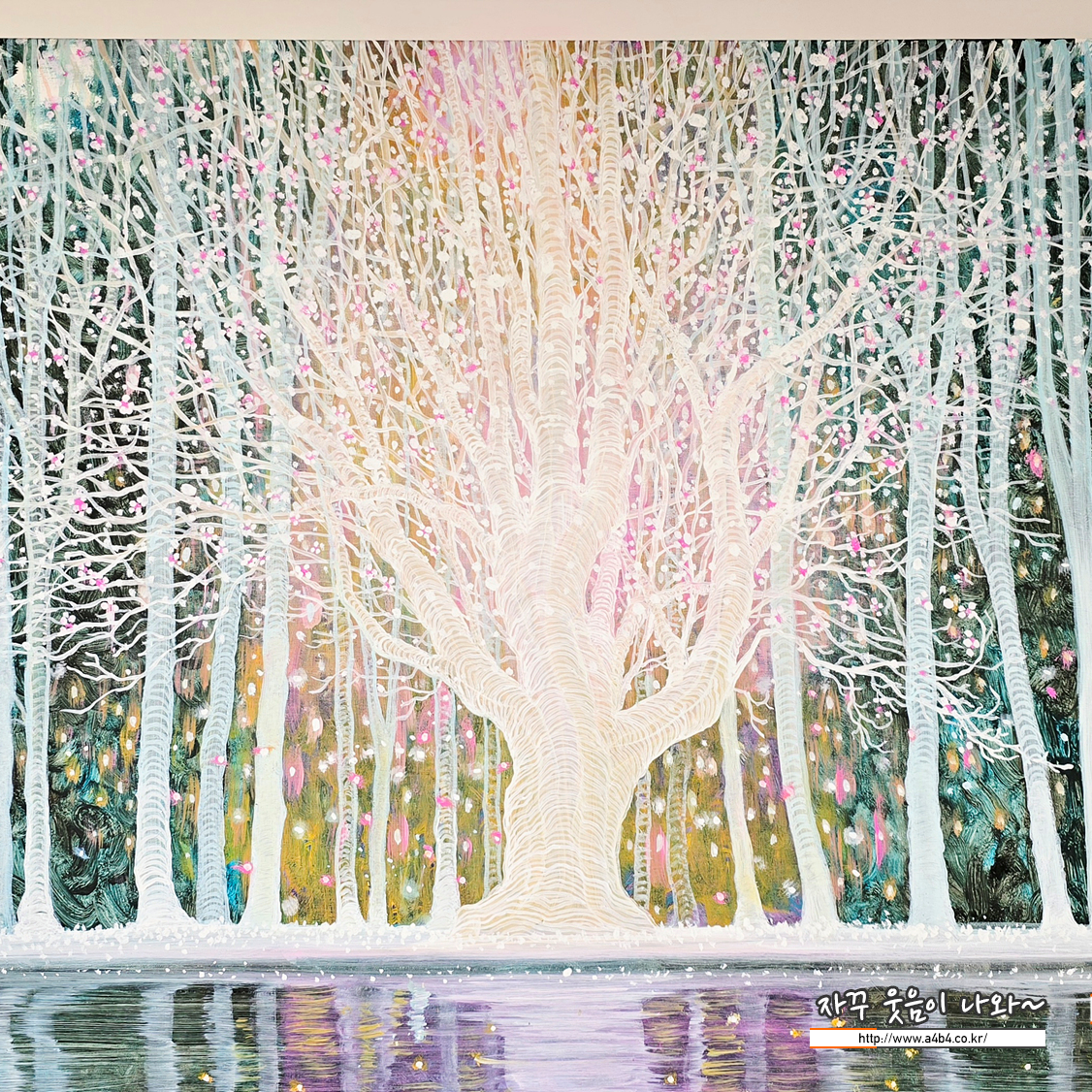 옛 이야기 속에서 하얀 나무는 세상을 잇는 문이었다. 물결은 그 문을 지키는 강이었고 숲은 영원의 성벽이었다. 숲과 물이 서로를 비추듯, 나와 너도 경계 없이 흐른다.
