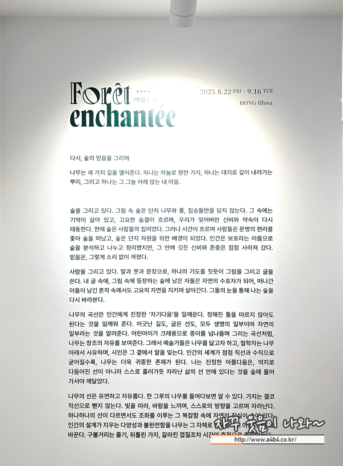 잠실에 살다보면 좋은점 중에서 하나가 바로 항상 새로운 전시회와 작가를 만나볼 수 있는 것인데, 오늘은 올림픽공원 근처 열정갤러리에서 열리고 있는 홍일화 전시회 마법의 숲 관람후기