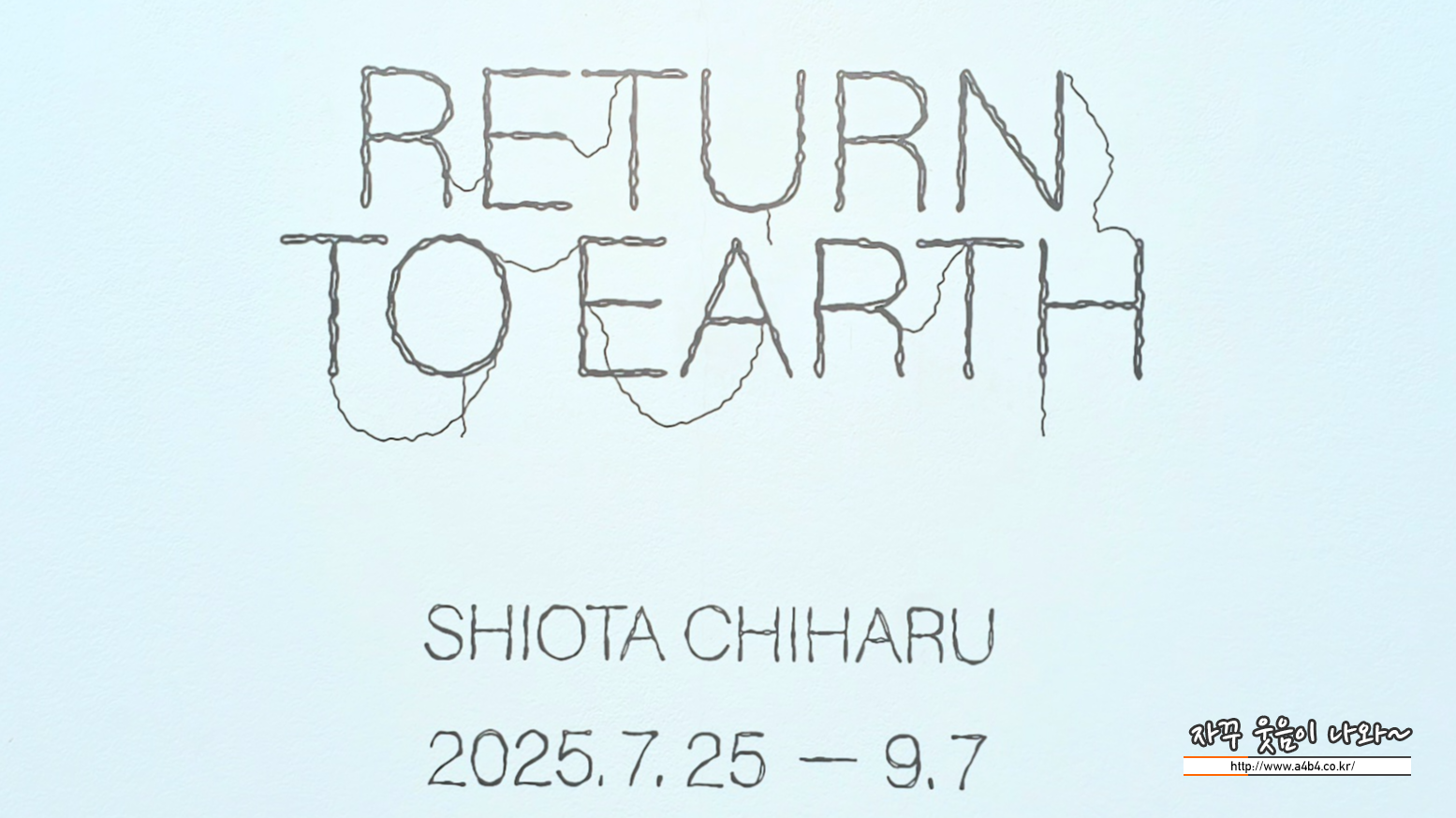 가나아트센터 3전시장에서 선보이는 전시명과 동명인 설치 작품 'Return to Earth'(2025)에는 시오타 치하루의 철학이 응축되어 드러난다. 작가는 전시장의 천장에서부터 서로 얽혀 내려오는 검은 실과 바닥에 흙더미를 배치함으로써 인간 존재가 자연으로부터 비롯되어 다시 그곳으로 회귀한다는 순환적 사고를 시각화하고, 자아와 세계, 삶과 죽음의 경계를 교차하는 구조를 형상화한다.