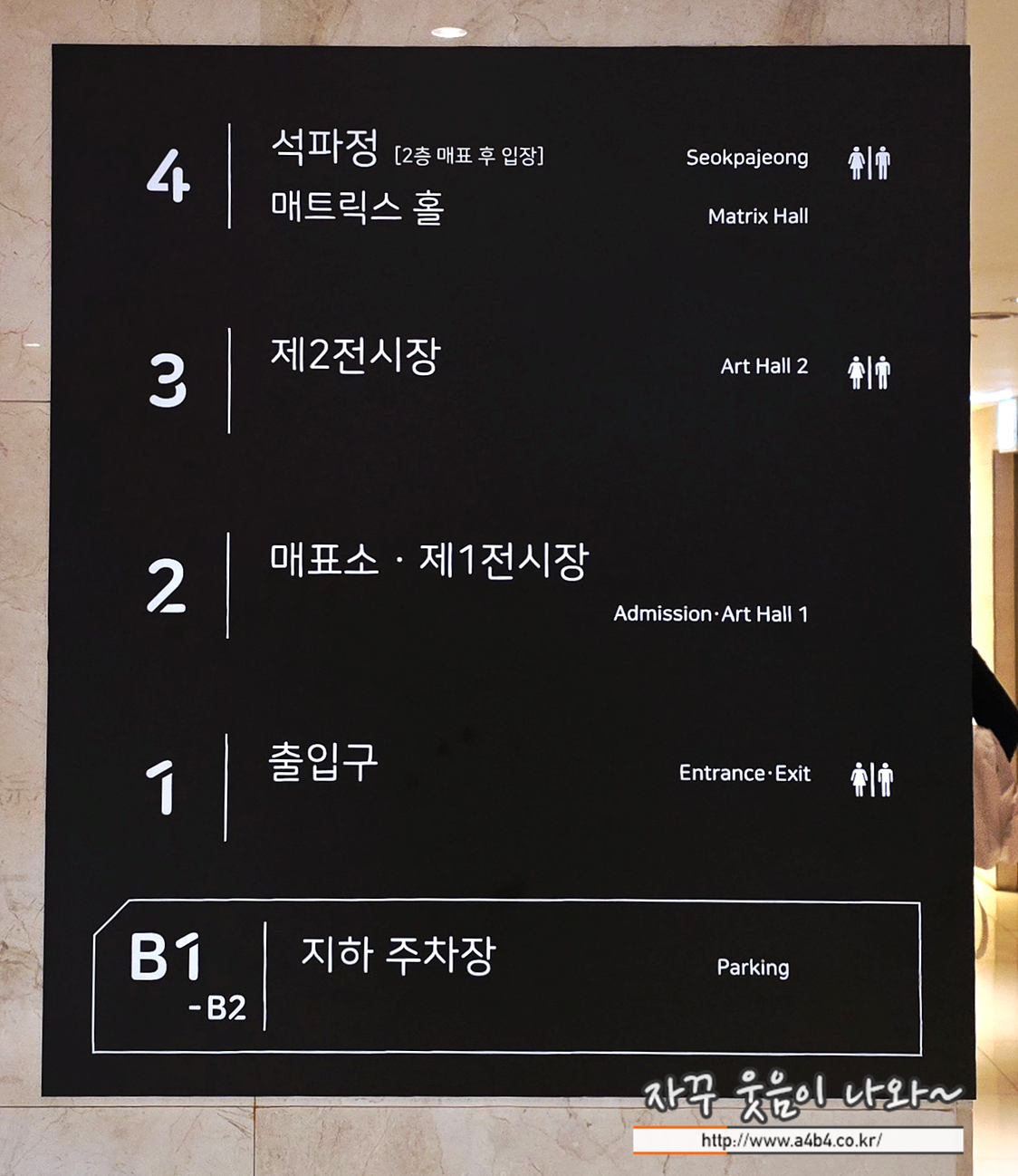 건물은 M1과 M2, 그리고 석파정으로 구성되어 있는데 서울미술관 주차장은 아래 사진의 M1 건물 지하 1층과 지하 2층에 위치해 있습니다.