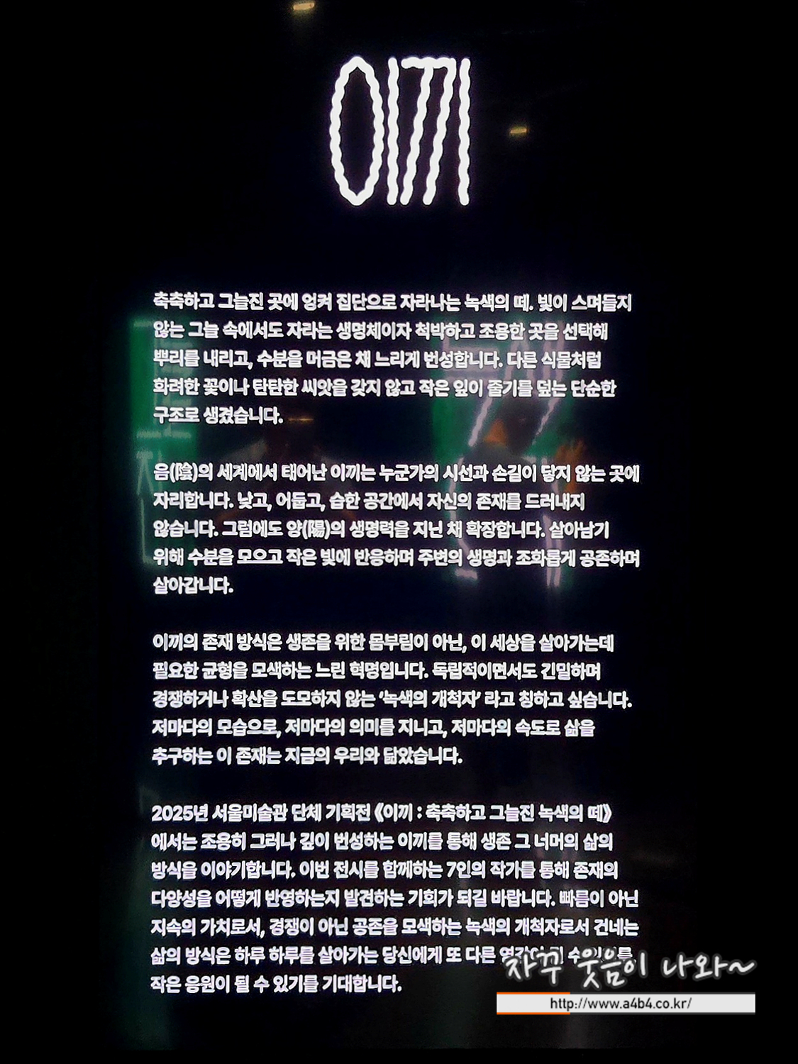 이번 서울미술관 이끼 전시회 마지막 문구
