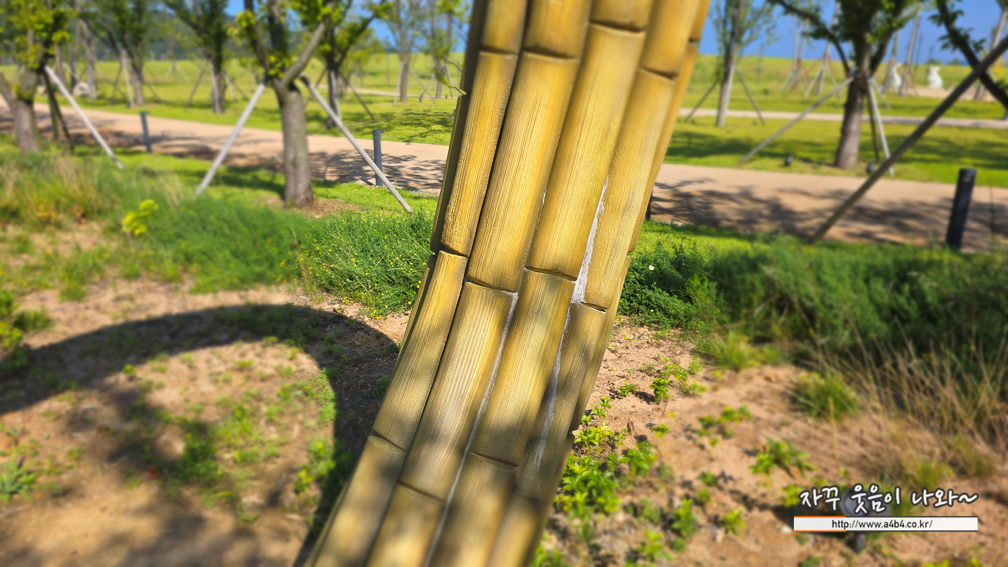 다소 어설픈 짝퉁 대나무 조형물이 있고. 안쪽으로 어린이 놀이터와 호랑이, 구미호, 곰 조형물들이 세팅되어 있는데...