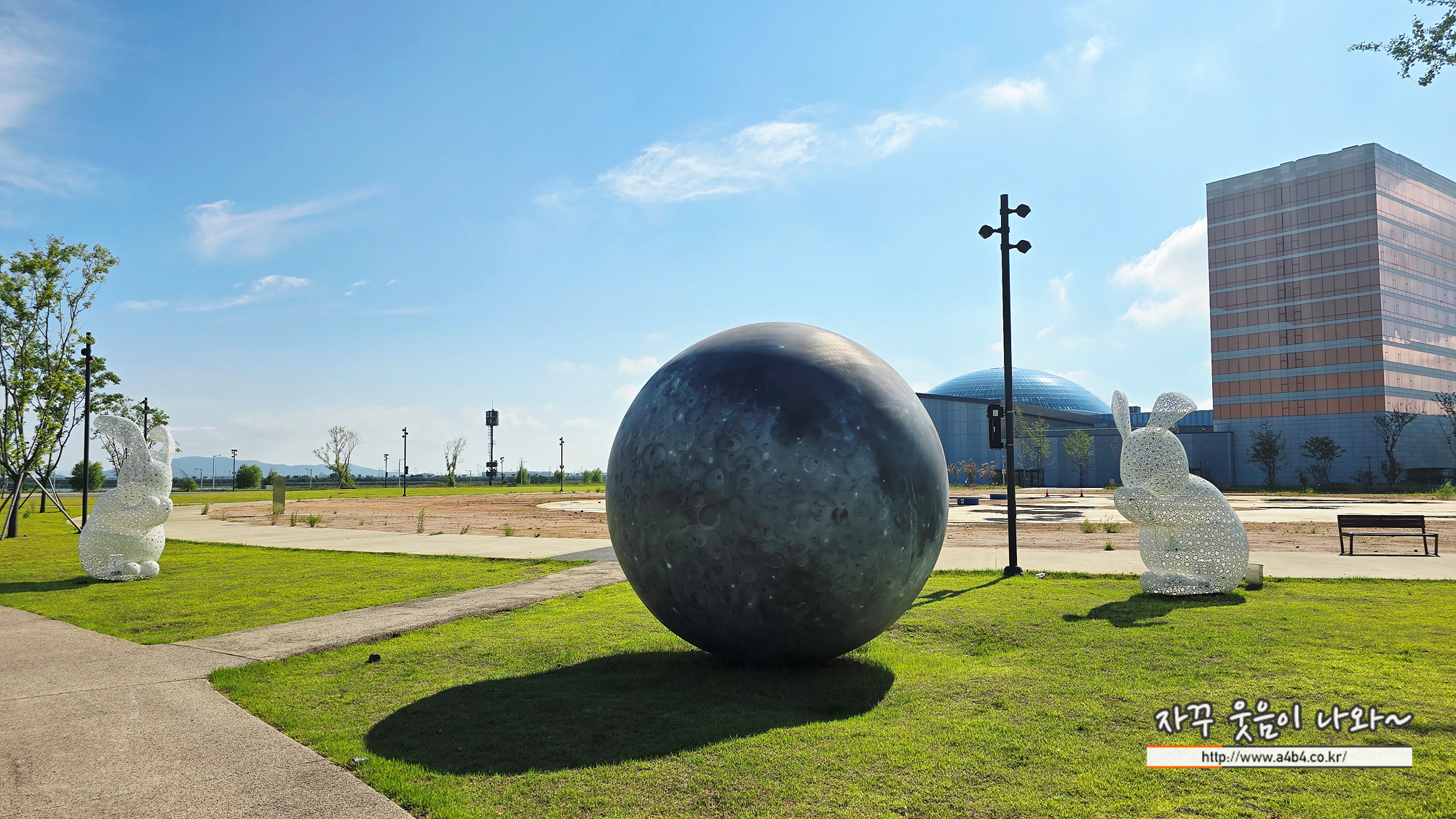 멀리서 거대한 토끼 3마리가 보이는데요. 대형 달 모형 주변으로 삼각형 모양으로 앉아 있습니다.