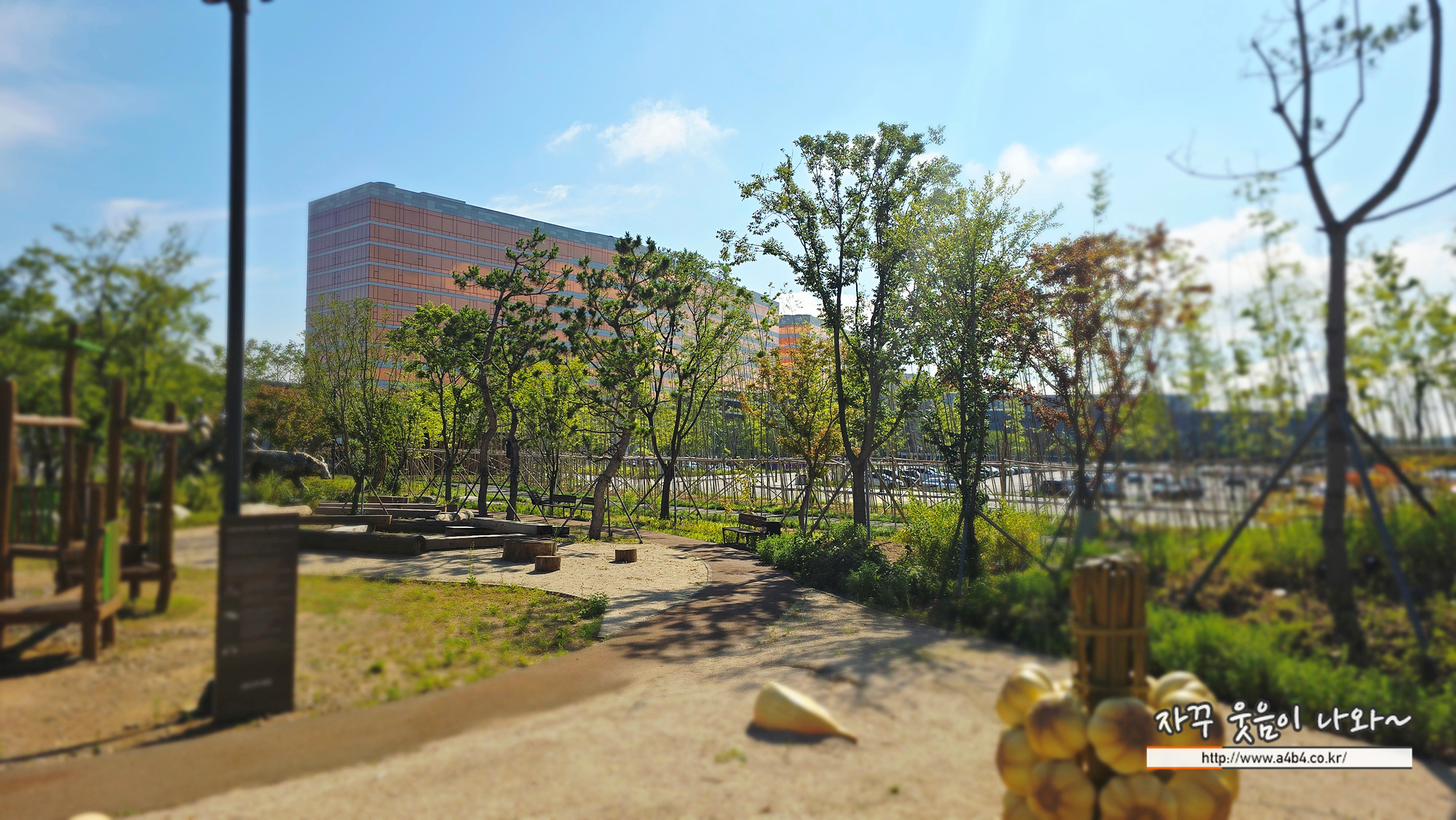 건너편에는 아이들 미끄럼틀 등 놀이시설과 함께 곰 한 마리와 마늘 조형물이 있습니다.