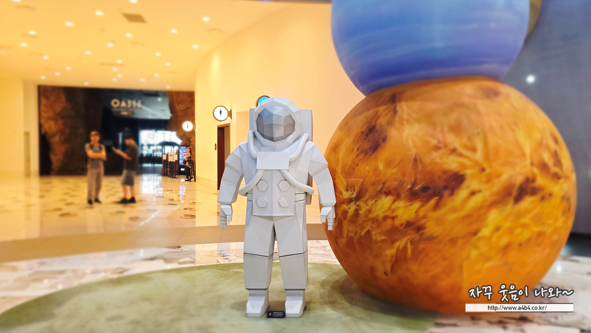 우주를 모티프로한 공간에 행성들과 거대한 우주인 조형물이 설치되어 있고요.