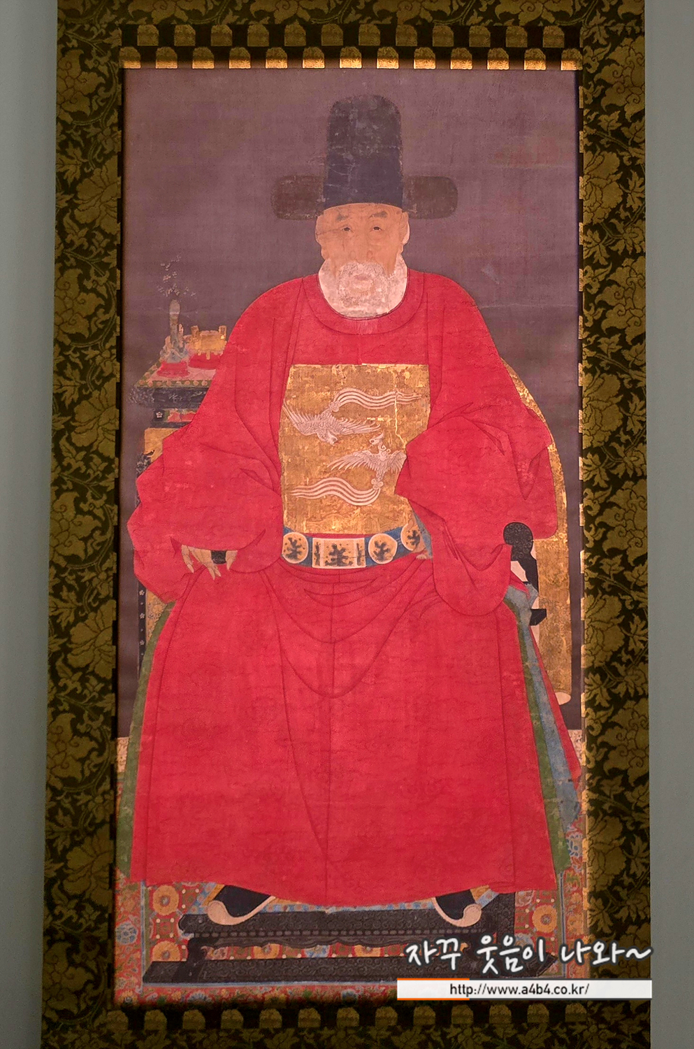 적색 단령에 봉황이 그려진 금색 흉배를 부착한 전형적인 명대 문인 초상화 형식이다.