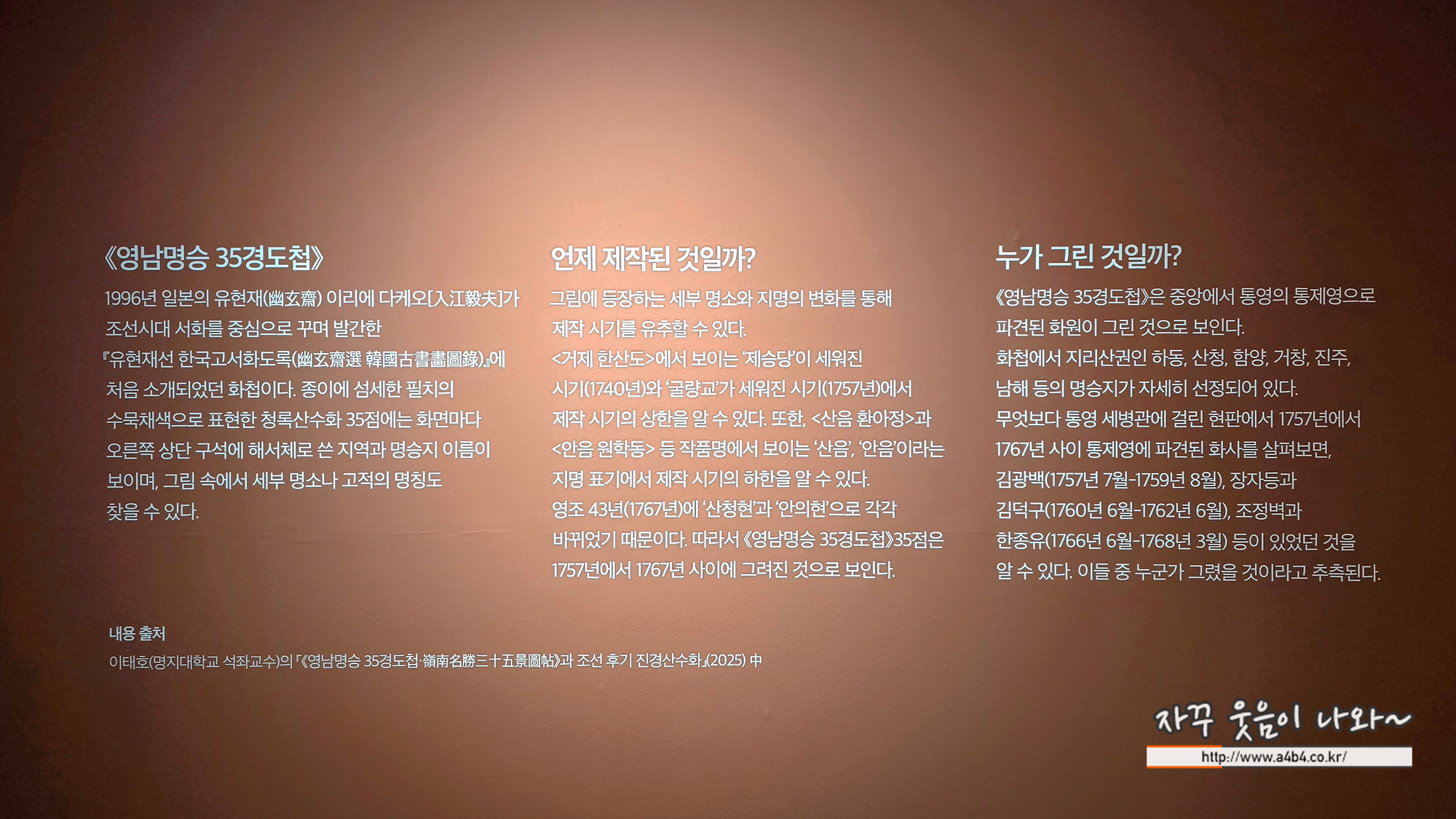 영남지방의 아름다운 명소를 지도 형태의 진경산수화풍으로 표현한 35점의 그림이다.