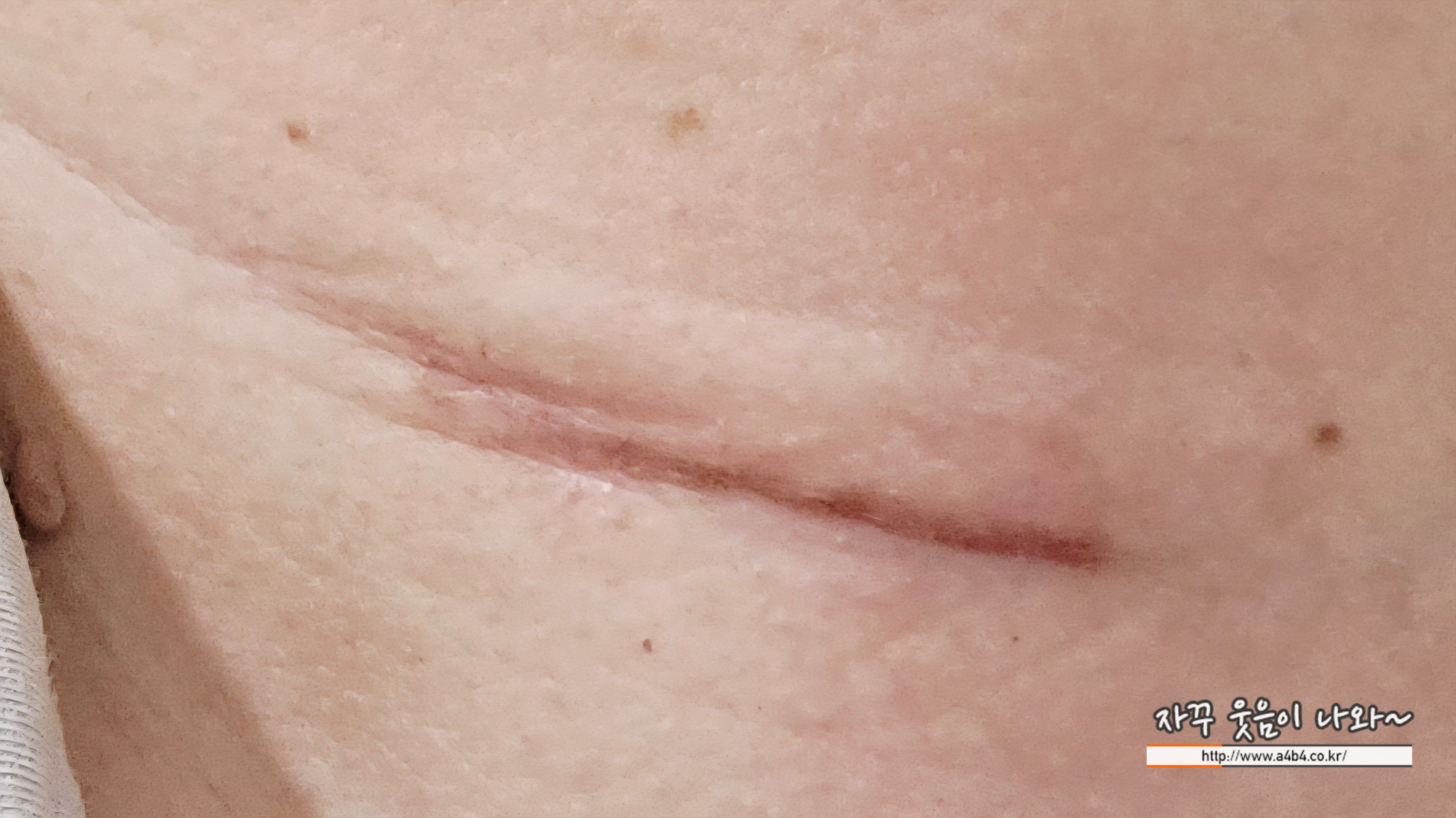 수술 3주차 흉터 사진, 수술 직후 흉터에 비하면 상당히 많이 약해짐