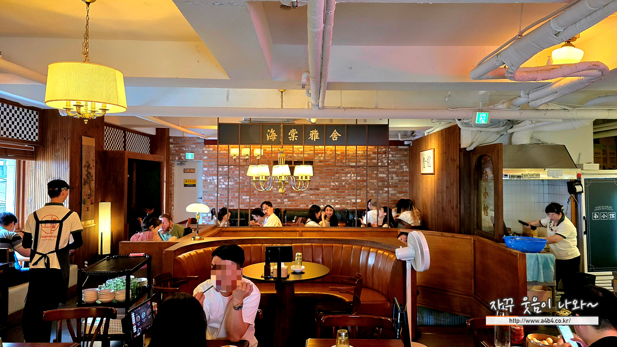 남소관 우육도삭면 2층 실내입니다. 매장 인테리어도 이국적이고 바둑판식 테이블 배열이 아닌 다소 개성있는 배치와 함께 벽쪽으로는 가림막이 있는 공간들도 있습니다. 보통 2~4인 테이블 기본으로 더 많은 인원 수용이 가능한 공간도 있습니다.