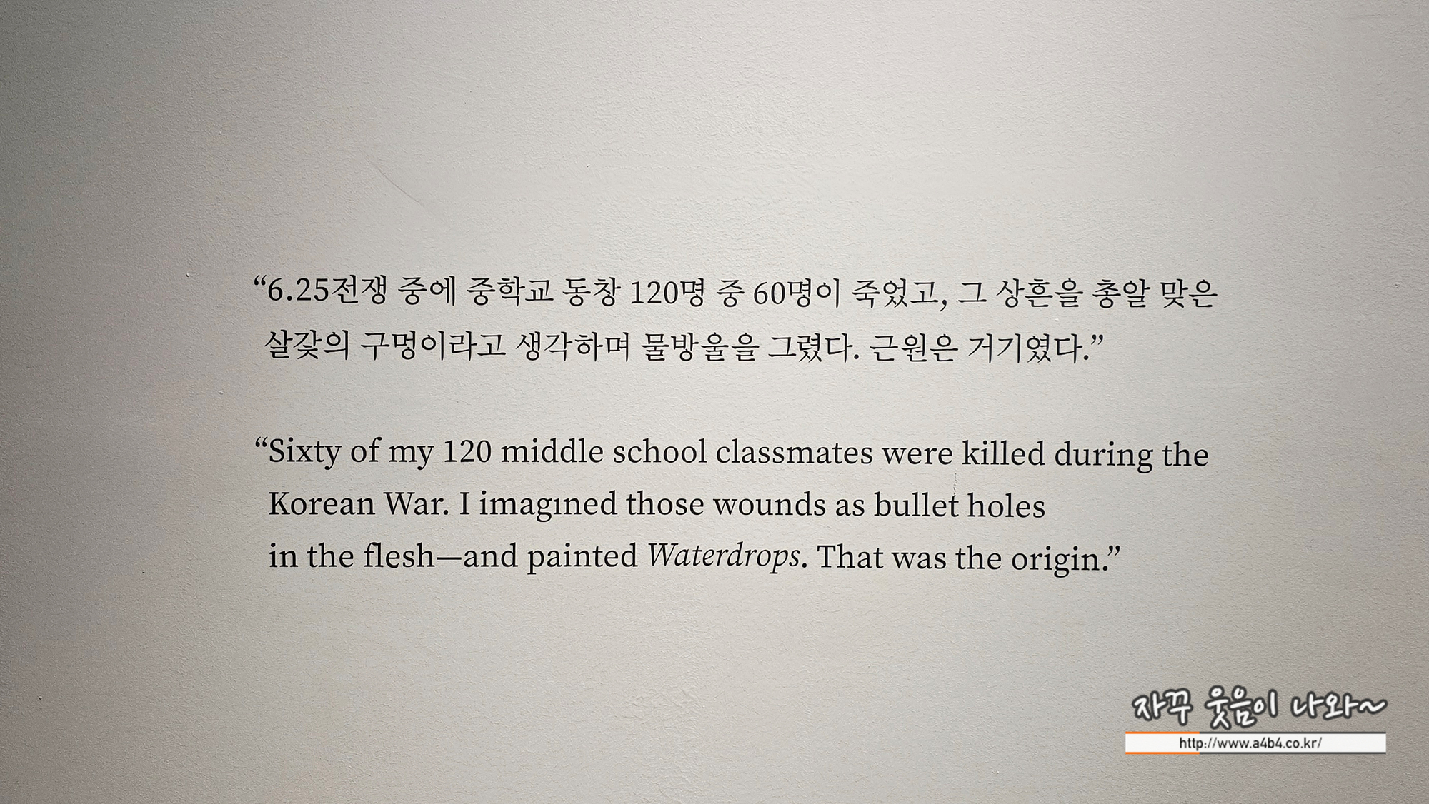 전쟁을 겪고 이를 이겨나가면서 물방울은 그에게 있어 단순한 대상이 아니라, 삶의 고통과 치유, 존재의 본질을 담아내는 철학적 상징이라는 부분을 이해하니 상당히 감동적인 전시회가 되었네요.