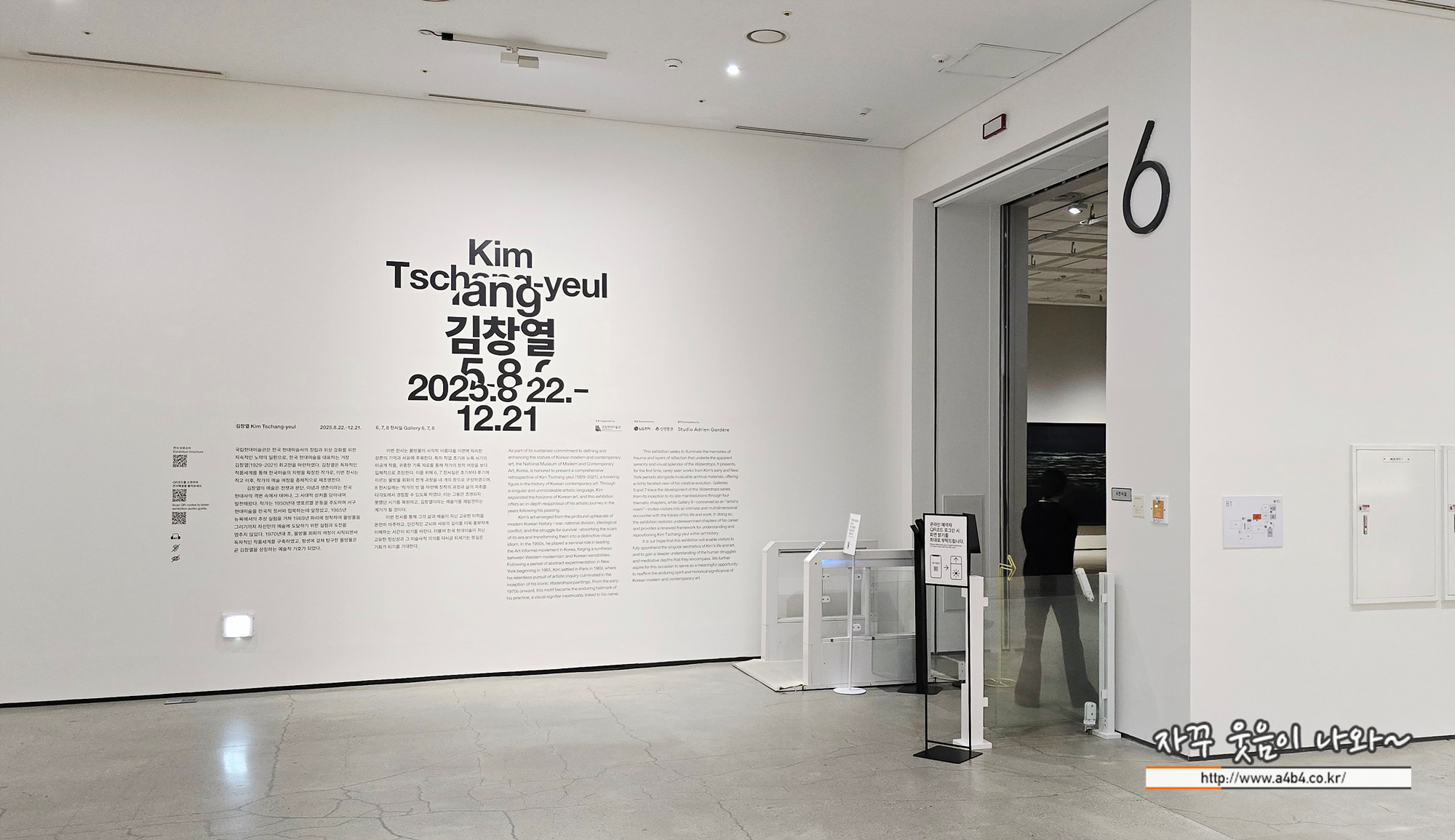 이번 김창열 회고전은 국립현대미술관 6~8관에서 열리며, 지하에 있는 6관과 7관은 2천원의 입장료로, 8관은 무료 관람이 가능합니다. 작품 감상에는 최소 120분 이상 생각하셔야 합니다.
