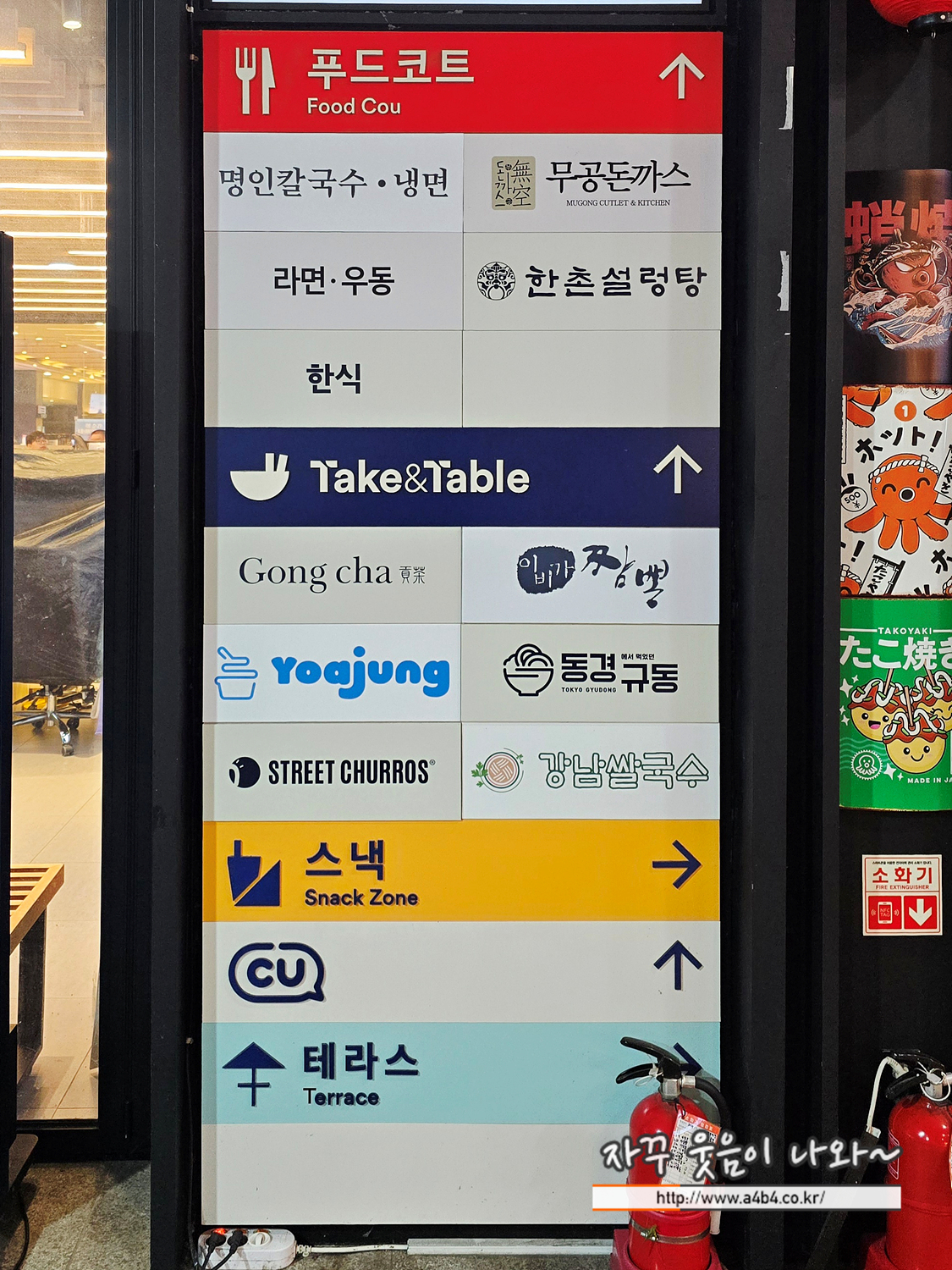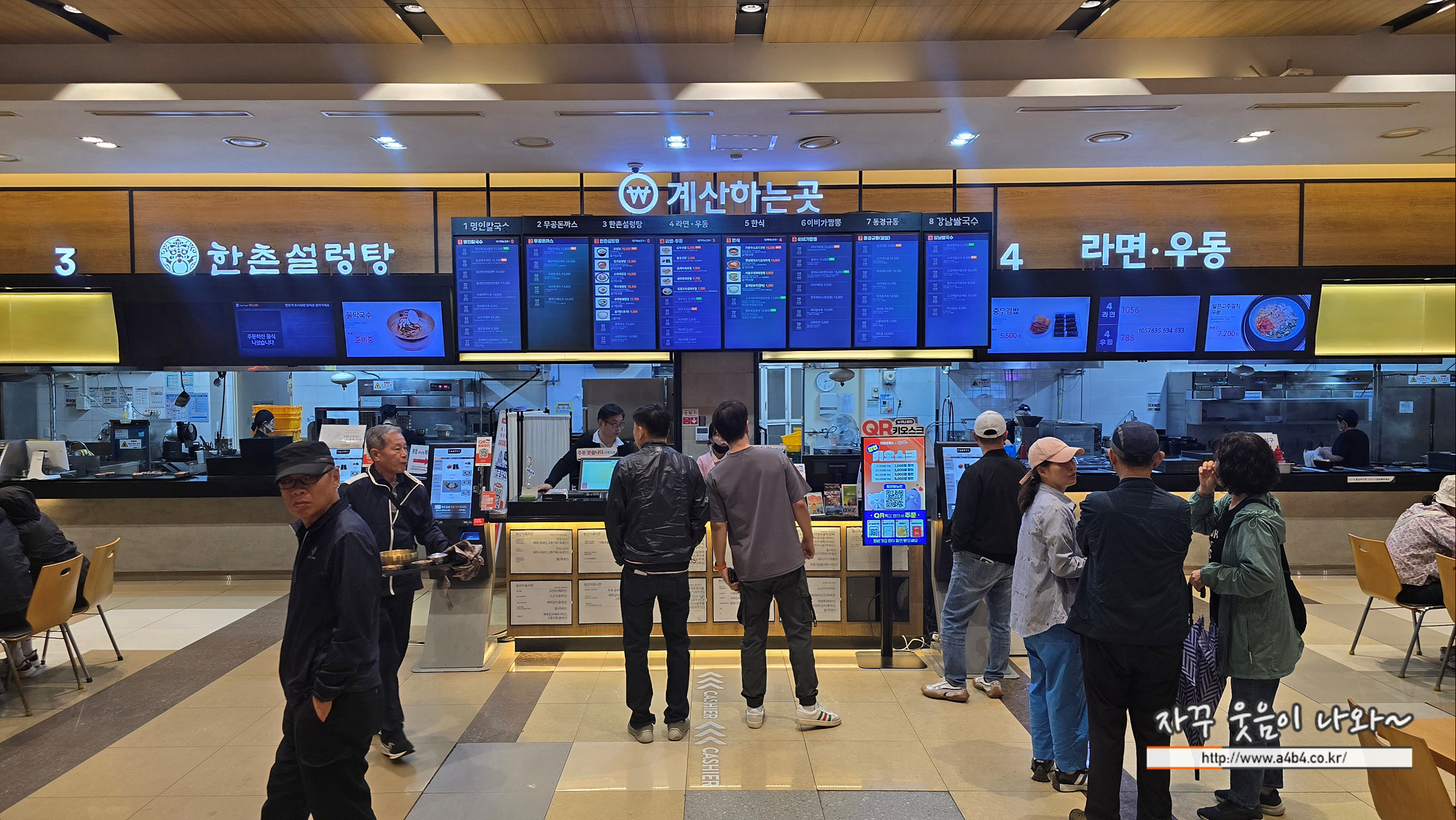 - 푸드코트는 이비가짬뽕, 명인칼국수 만두, 무공돈까스, 한촌설렁탕, 분식, 강남쌀국수, 동경규동 등