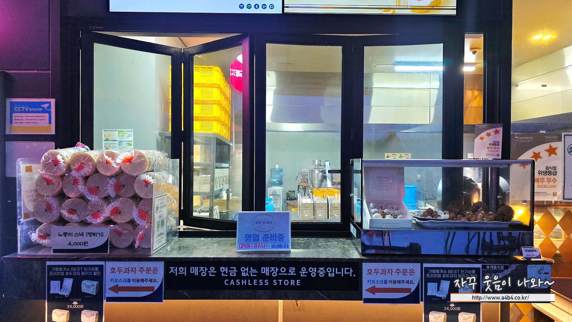 가평휴게소 춘천방향 호두과자 매장도 영업하지 않네요. 안내판에는 영업시간은 오전 7시 부터라고 합니다.