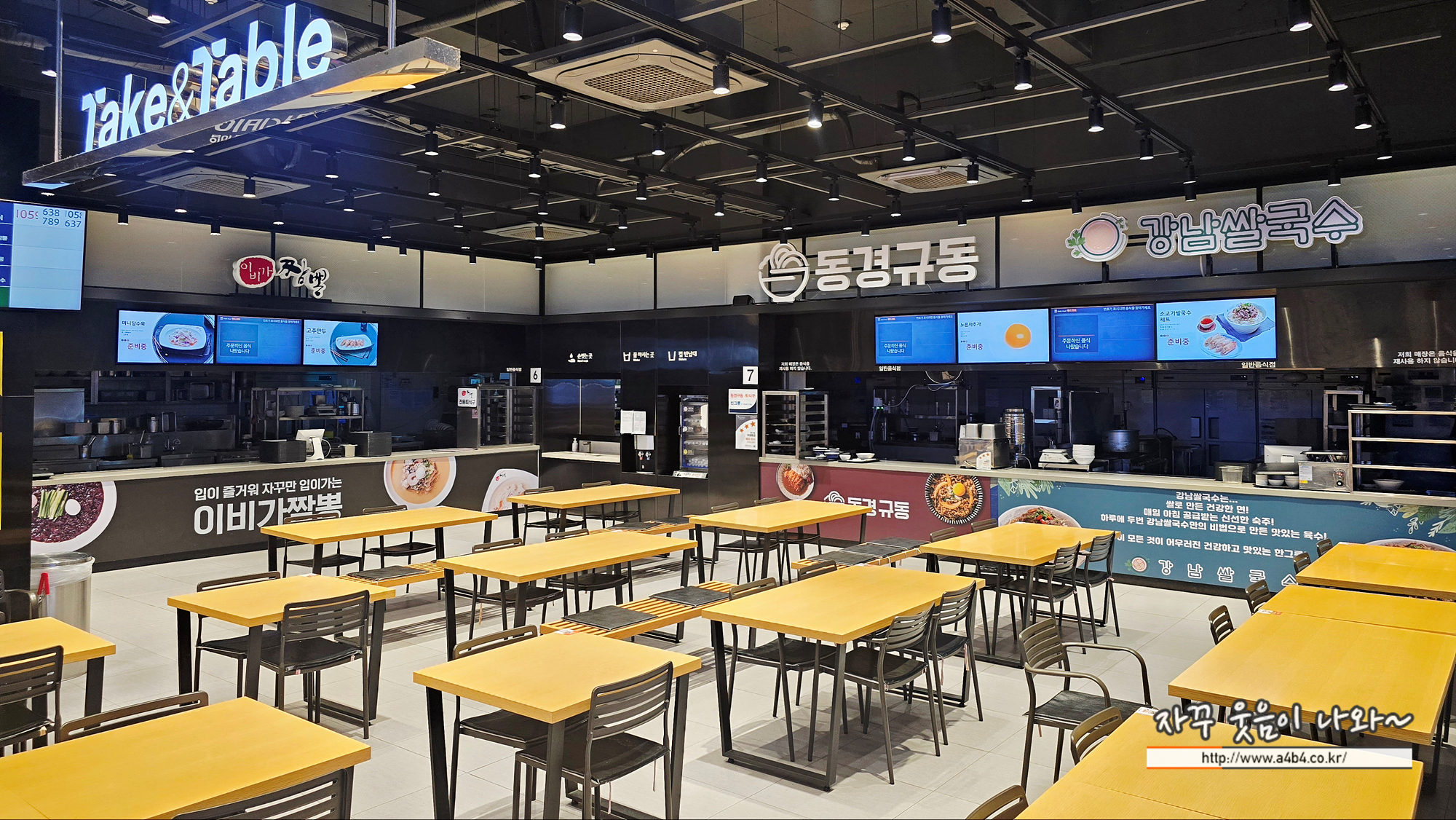 - 푸드코트는 이비가짬뽕, 명인칼국수 만두, 무공돈까스, 한촌설렁탕, 분식, 강남쌀국수, 동경규동 등