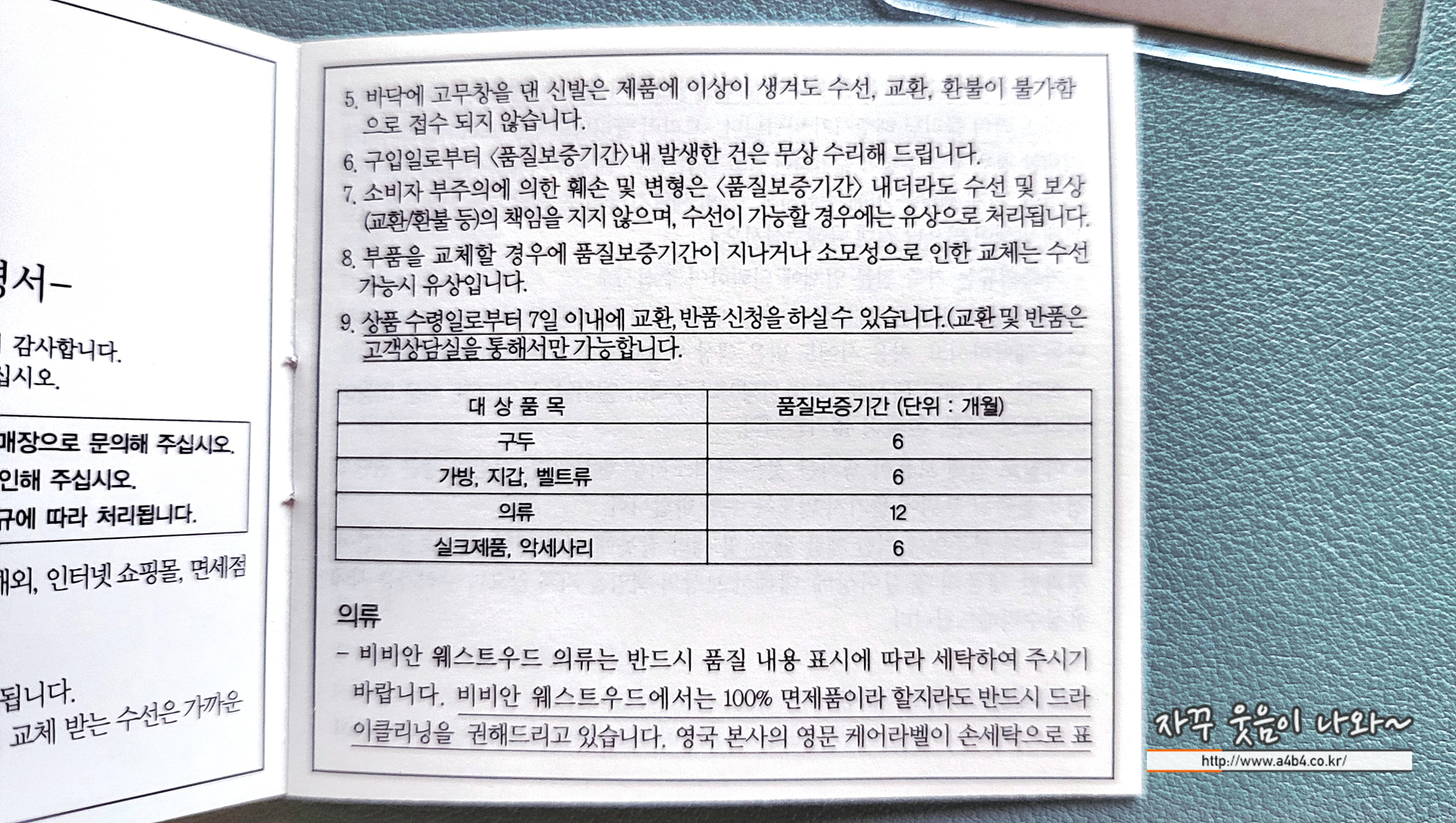 참고로 비비안웨스트우드 지갑 품질보증기간은 6개월...