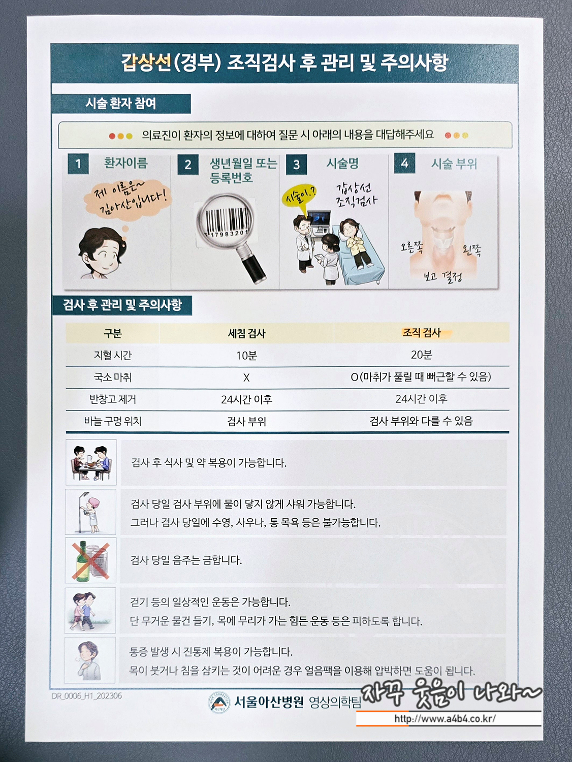 이번에는 갑상선 생검이라고 말하는 갑상선 조직검사 (세침검사) 후기입니다.