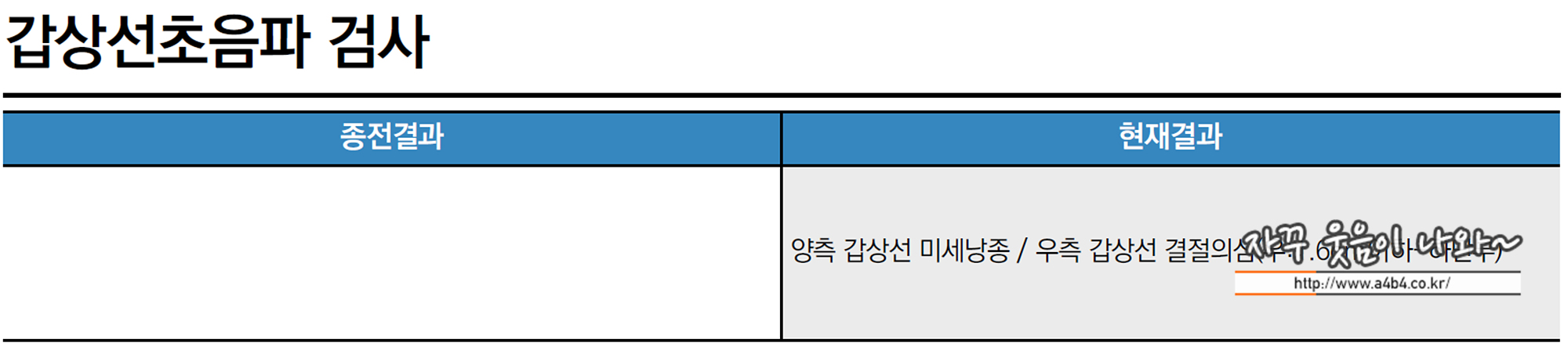 지금까지 포스팅한 부갑상선 수술전 요약은 건강검진에서 갑상선 미세낭종과 함께 오른쪽 갑상선 결절이 의심되었고, 서울 아산병원에서 정밀검사 결과 갑상선암이 아닌 부갑상선 양성 결절로 진단.