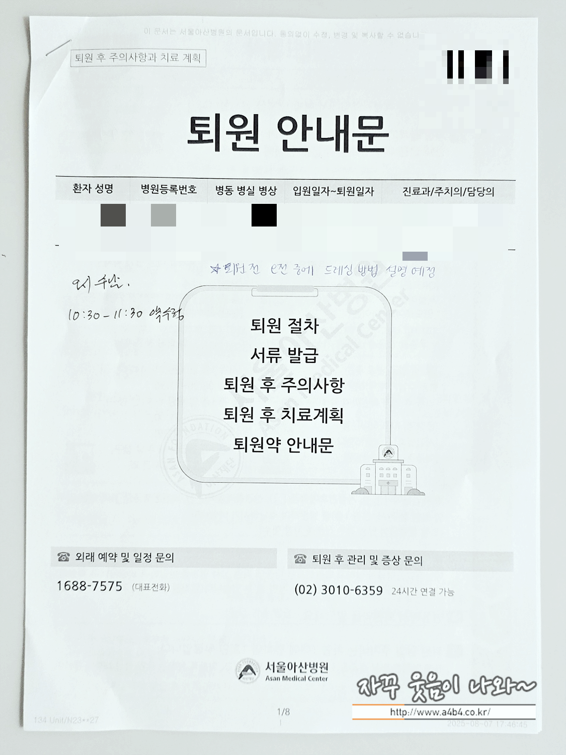 갑상선 수술시 보호자 1인이 병실 출입과 대기가 가능합니다. 아래는 보호자가 받은 안내문이고요.