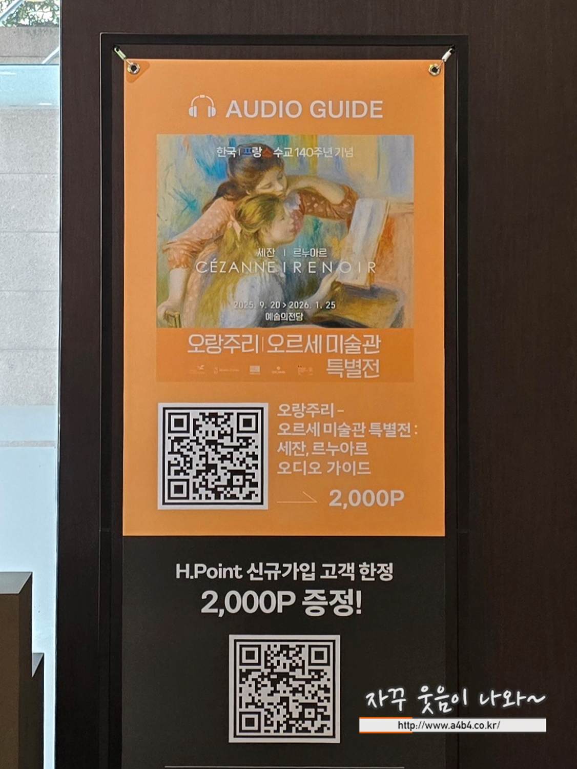 현대 H.Point 앱에서 오디오가이드 이용이 가능한데요. 무료는 아니고 유료로 오랑주리-오르세미술관 특별전 오디오가이드 이용이 가능합니다. 총 13점의 작품에 대한 해설이 제공되는데요. 유료 오디오가이드 고려하면 다소 부실한 전시정보와 분량이 제공됩니다.