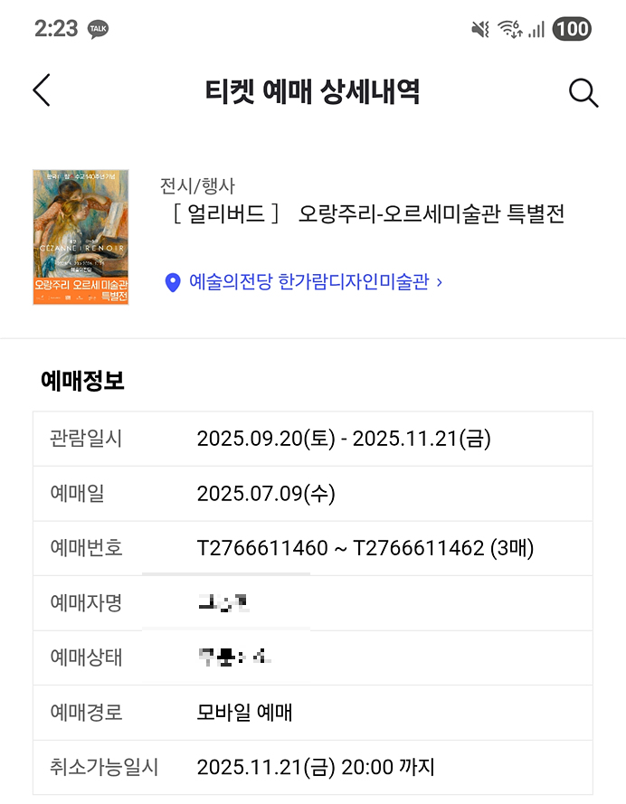 저는 1차 얼리버드 티켓을 구입해서 50% 할인된 11,000원에 관람했는데요. 요즘은 문화지원금 등이 주단위로 나오고 있어 해당 프로모션을 이용하면 오랑주리 오르세미술관 특별전 할인된 가격으로 관람 가능합니다.