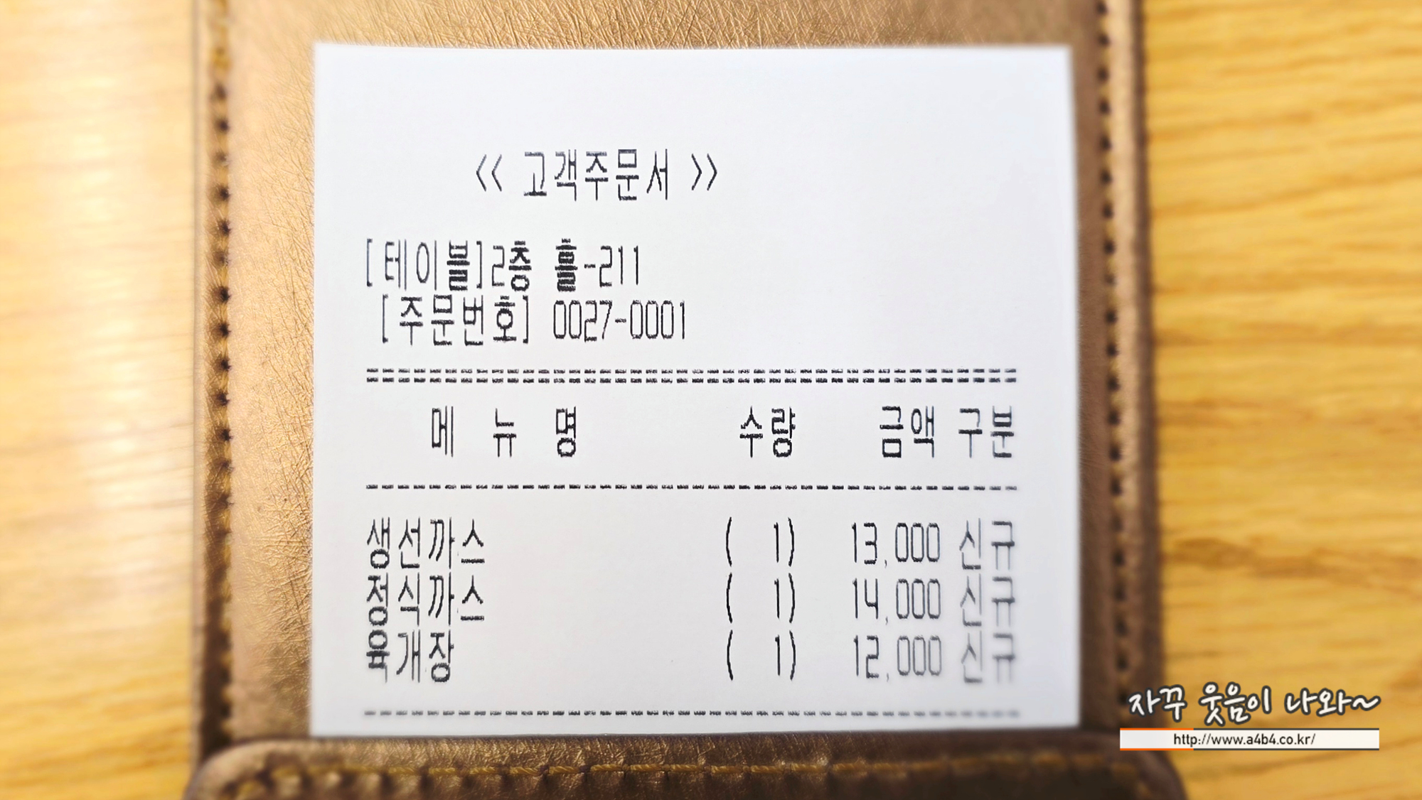 저희는 생선까스, 정식까스, 뚝배기김치찌개 대신에 육개장 주문합니다.