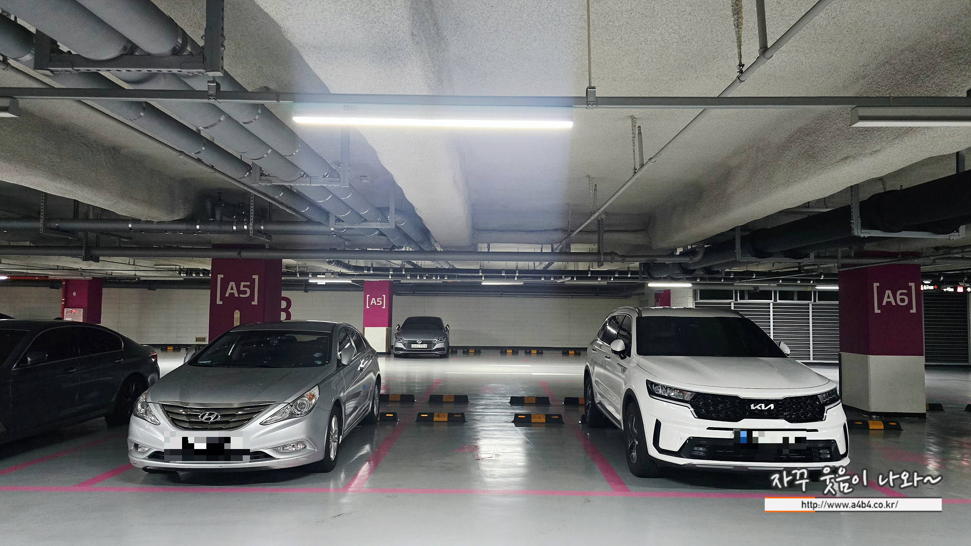 주차공간 폭은 일반적으로 대형차량만 아니면 주차 후 승하차에 큰 어려움 없습니다. 주차장도 깨끗하게 잘 관리되고 있네요