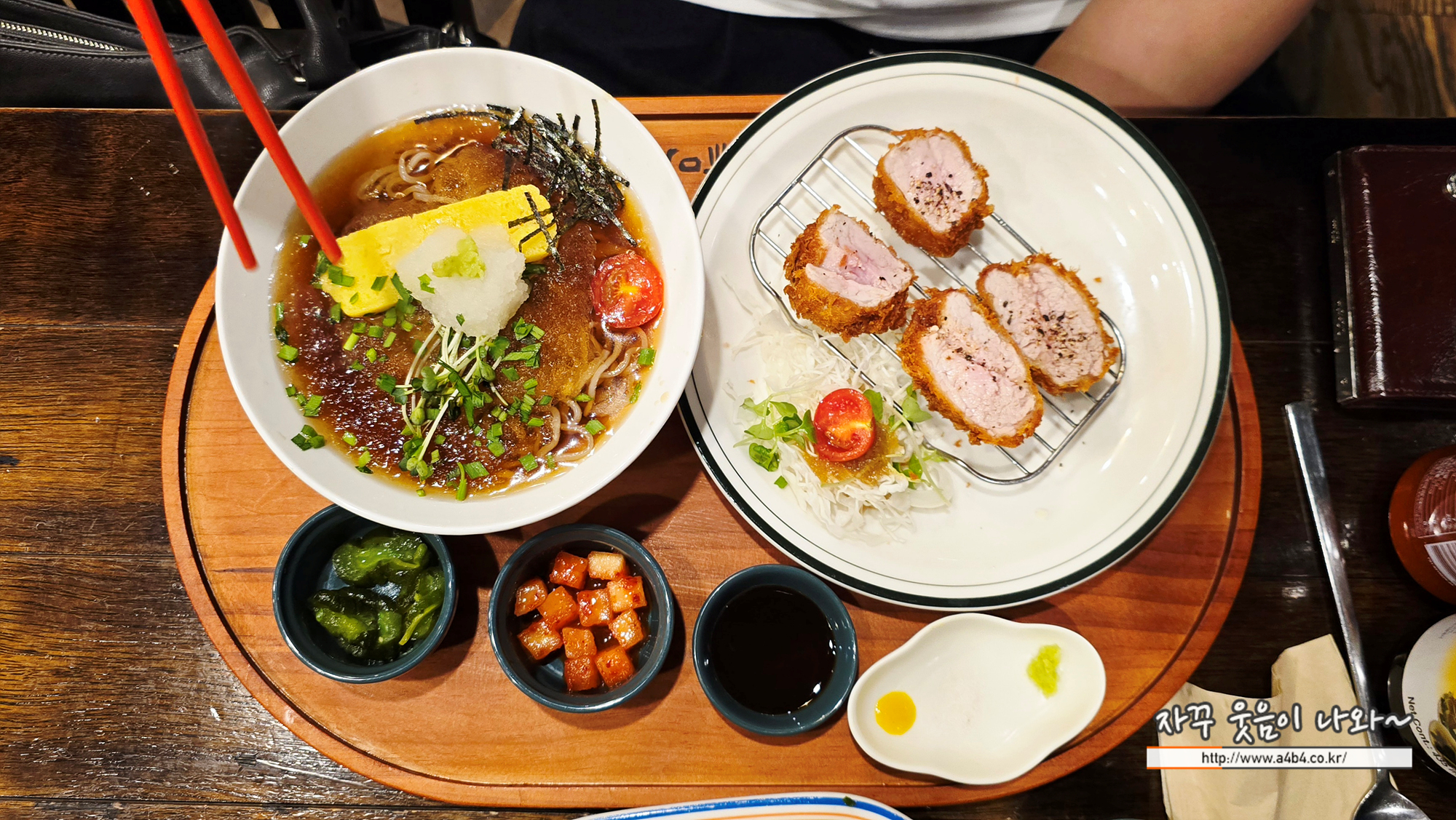 저는 안심카츠 + 냉모밀소바세트 주문했네요.
