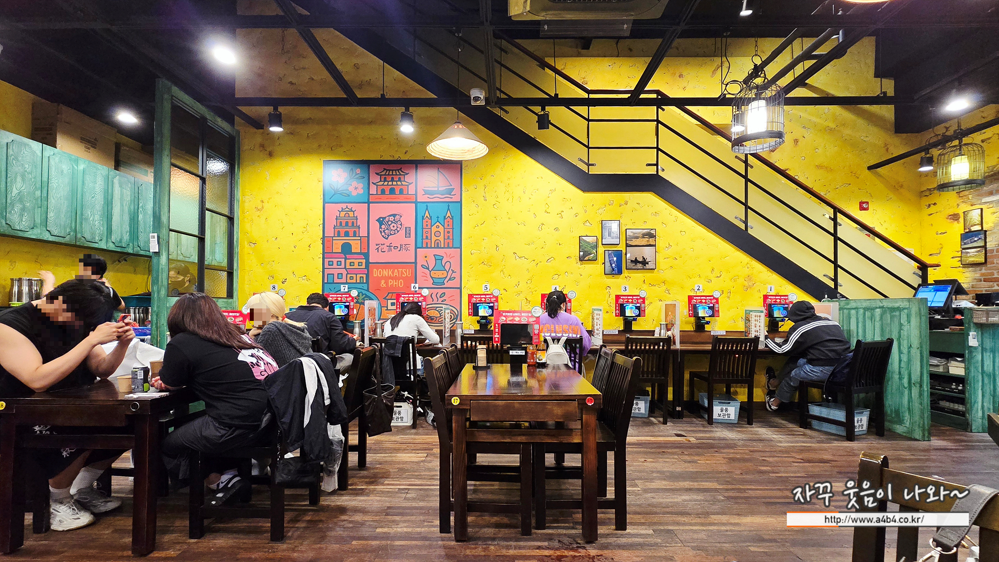 실내 인테리어는 원색과 파세텔톤으로 밝고 깔끔한 느낌을 주는데요. 식사장소는 사진속 1층과 2층에도 마련되어 있습니다. 과거 유명 쌀국수 전문점이 올해 변경된 새로생긴 남부터미널 근처 맛집입니다.