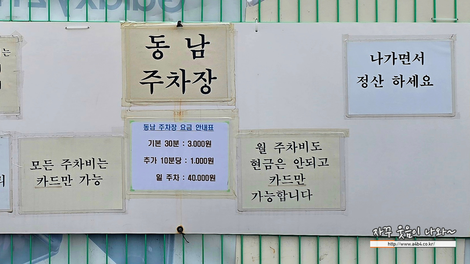 동남주차장 주차요금은 기본 30분 3,000원, 이후 추가 10분당 1,000원 주차요금이 부과됩니다. 무인운영 주차장으로 현금정산 불가, 카드 정산만 가능합니다.
